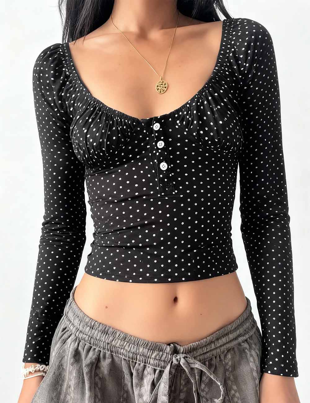 Simple Scoop Neck Polka Dots Crop Top DP26I460