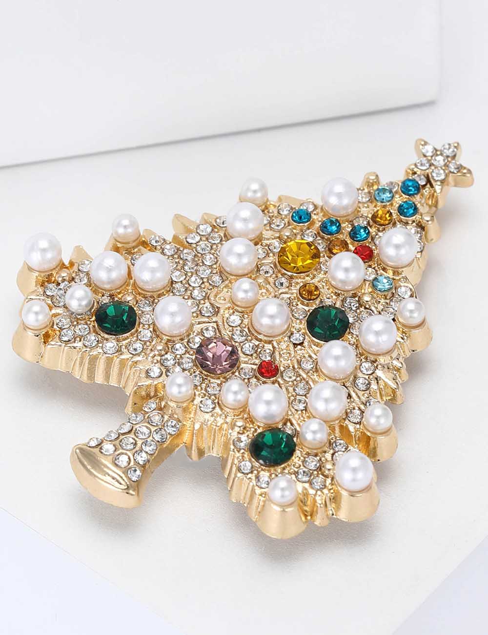 Elegant Crystal Pearl Christmas Tree Brooch DP25G621