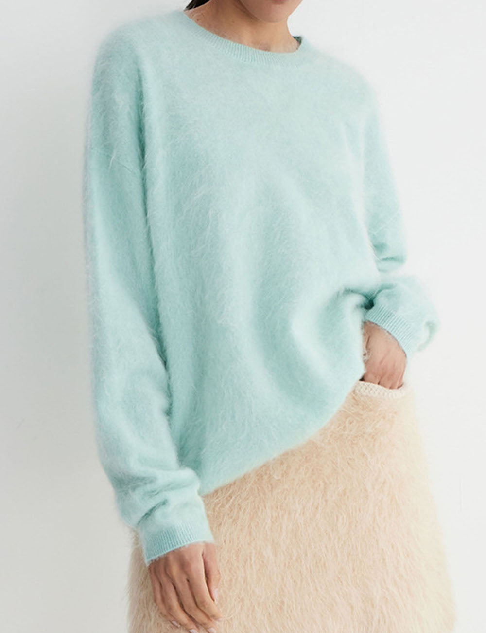 Winter Fuzzy Crew Neck Solid Color Knit Sweater DP25G947