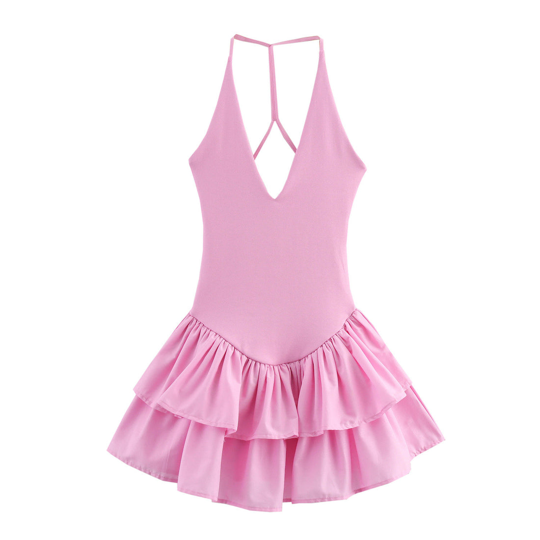 Trendy Solid Color Ruffle Hem Halter Dress DP25D584