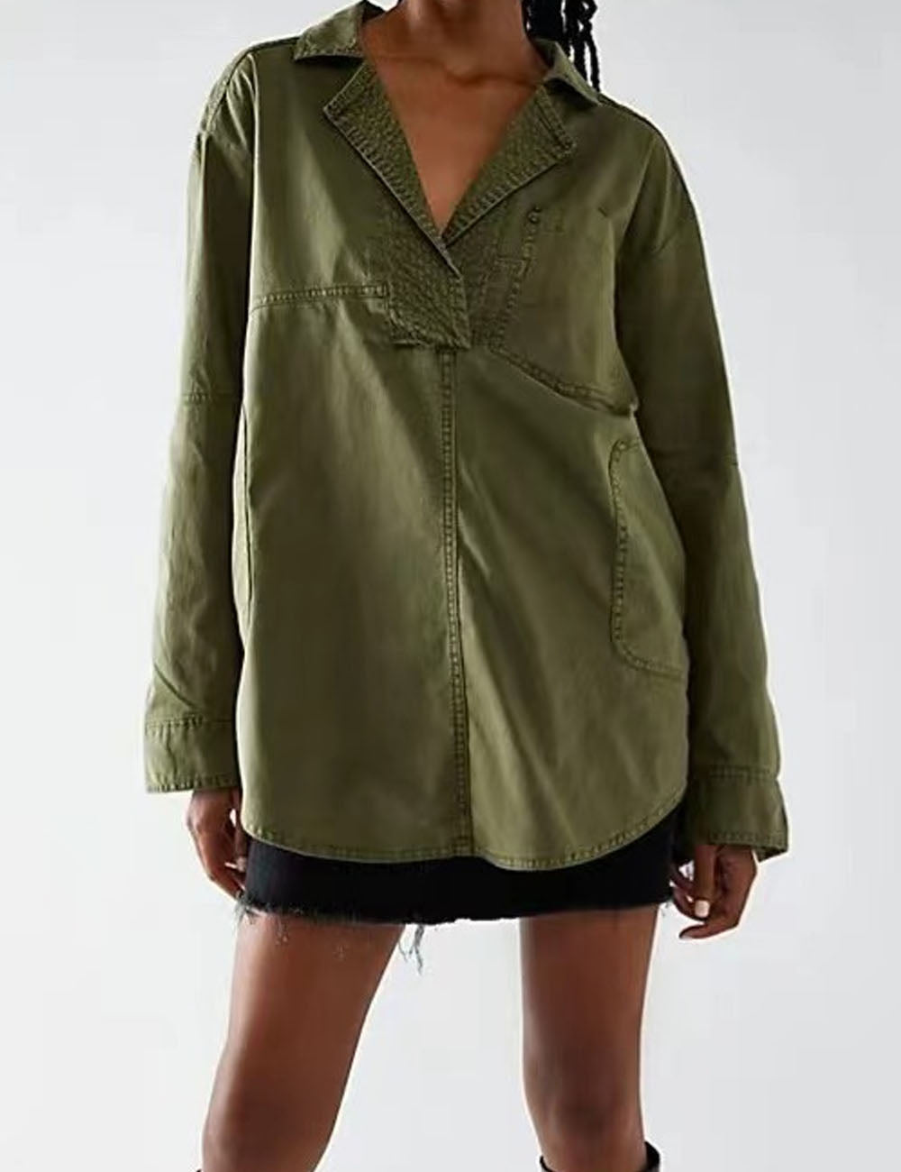 Features: * Washed Color * Lapel Collar * Long Sleeve * Button Down Front * Loose Fitting...