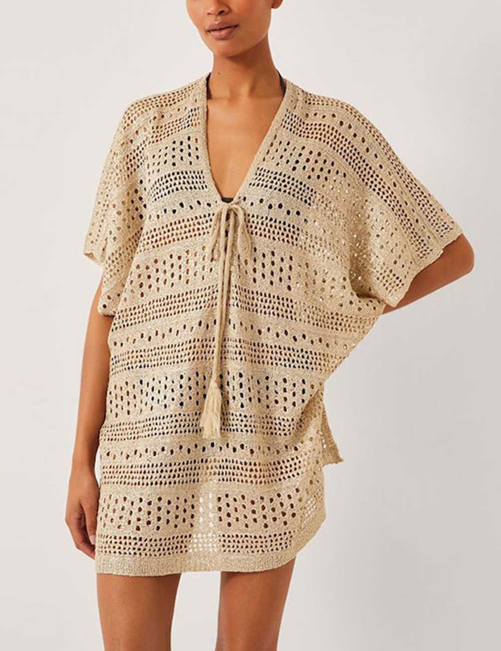 Features: * Sexy, Minimalist * V-Neck * Hollow Out Style * Solid Color * String Tie Design * Batwing Sleeves * Bikini Cover Up * Loose Fit...