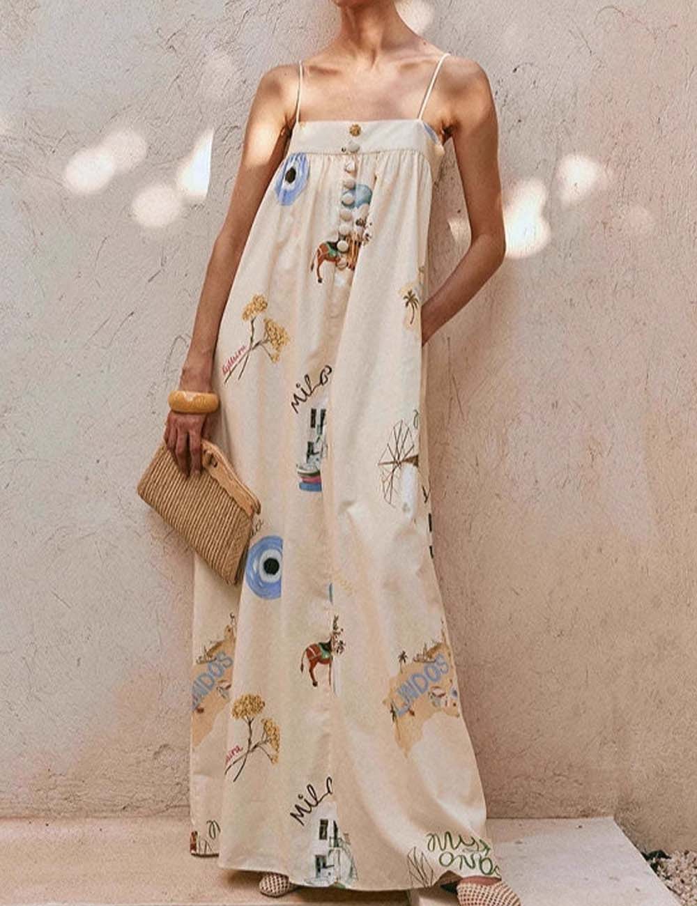 Casual Spaghetti Strap Print Beach Maxi Dress DP26I472