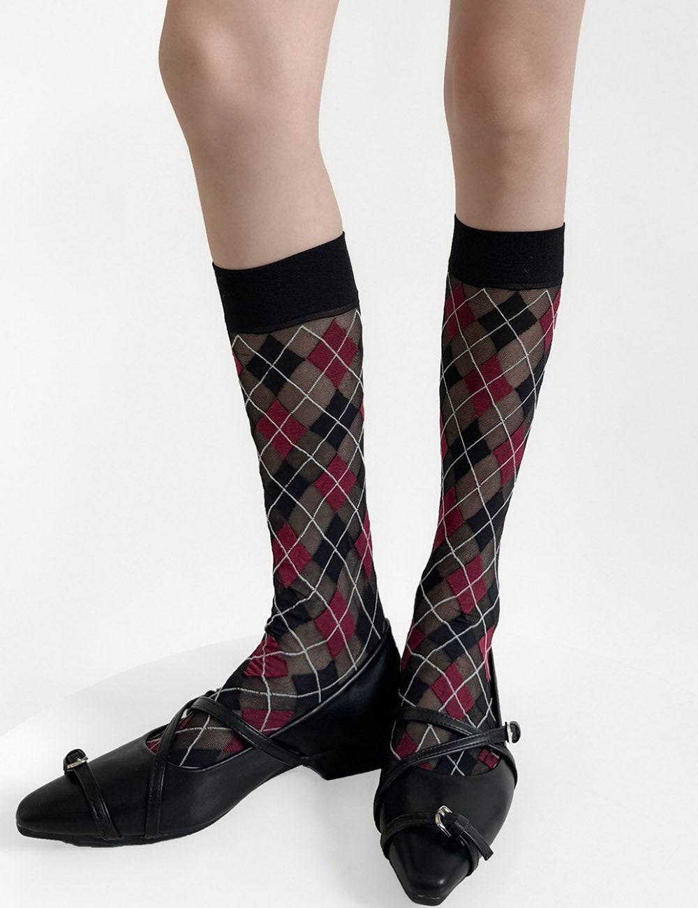Vintage Plaid Color Block Sheer Calf Socks DP25E988