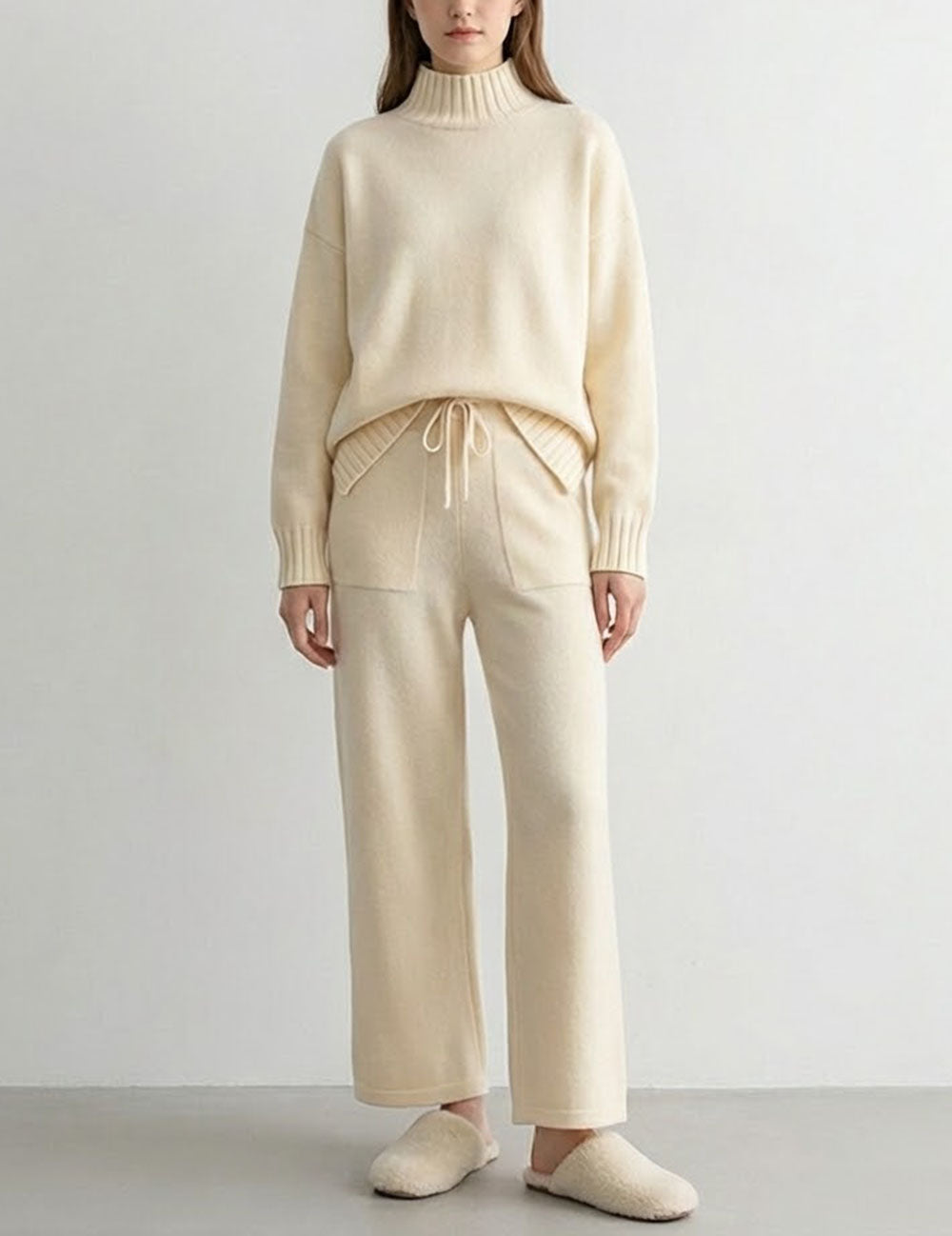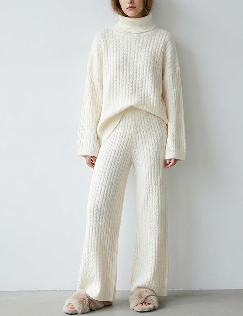 Feature: * Solid Color * Cable Knit * Turtleneck * Pullover Sweater * Long Sleeve * Soft Fabric * Wide-Leg * Elastic Waist * Long Pants * Loose Fit...