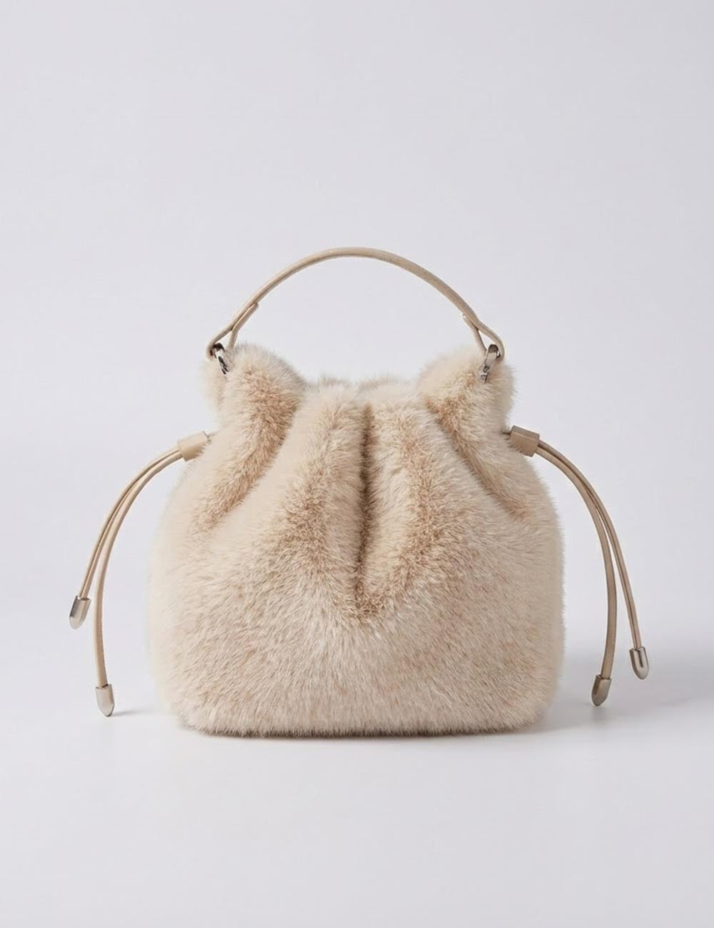 Features: * Solid Color * Soft Plush * Fluffy Fur * Top Handle * Drawstring Design Closure * Bucket Bag * Versatile...