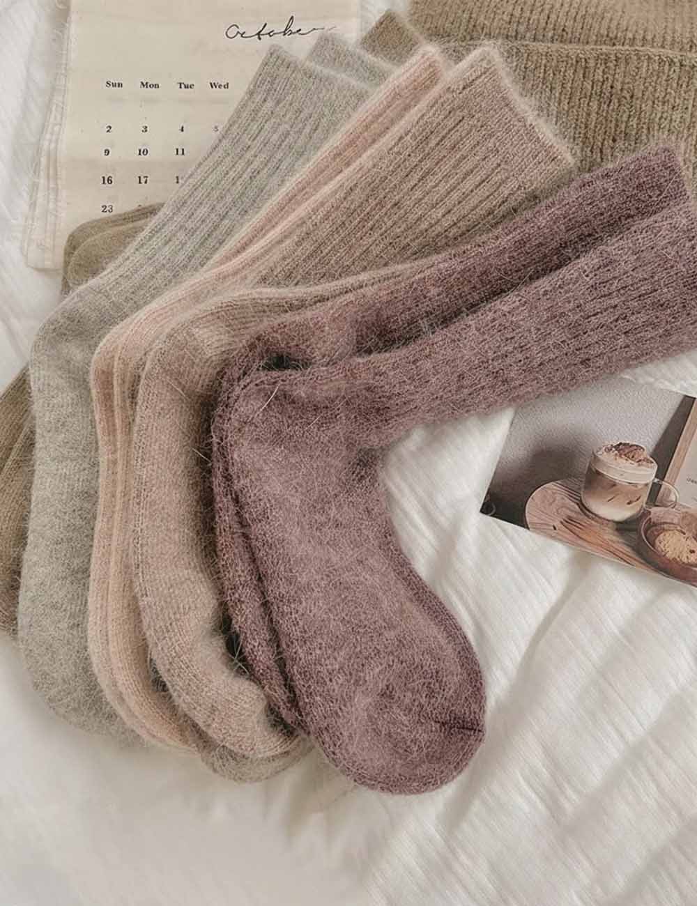 Vintage Thicken Warm Wool Solid Crew Socks DP25H540