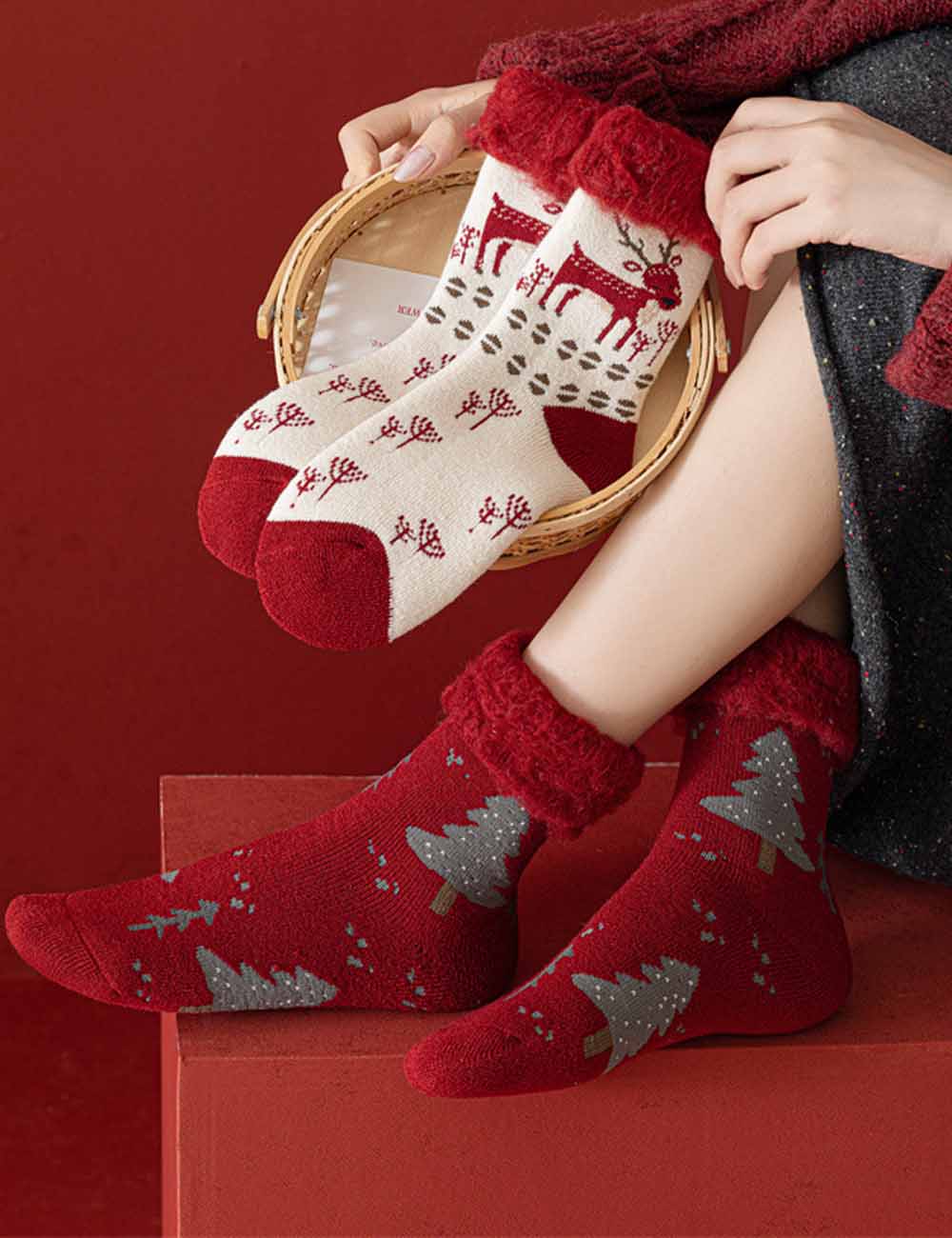 Christmas Reindeer Winter Fuzzy Crew Socks DP25G757