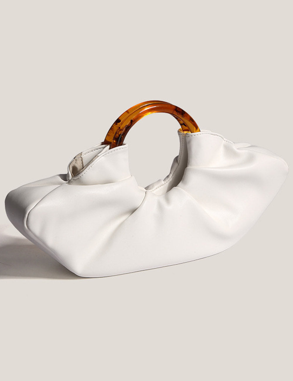 Ruched Cloud Round Handle PU Leather Handbag DP25H599