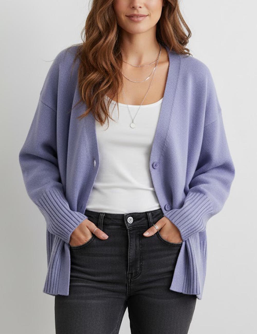 Elegant V-Neck Solid Color Loose Knit Cardigan DP25G930