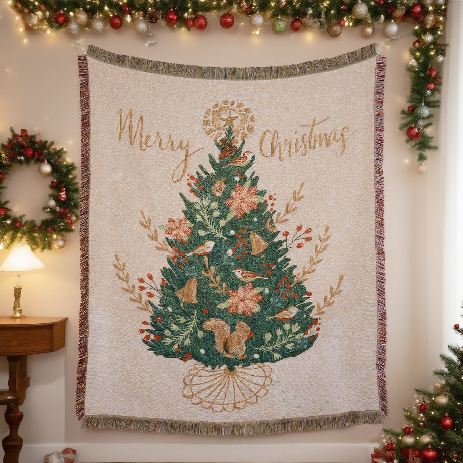 Christmas Tree Jacquard Tassel Throw Blanket DP25H421