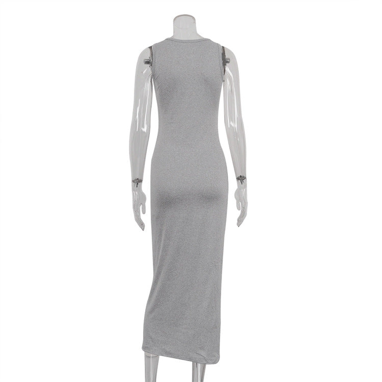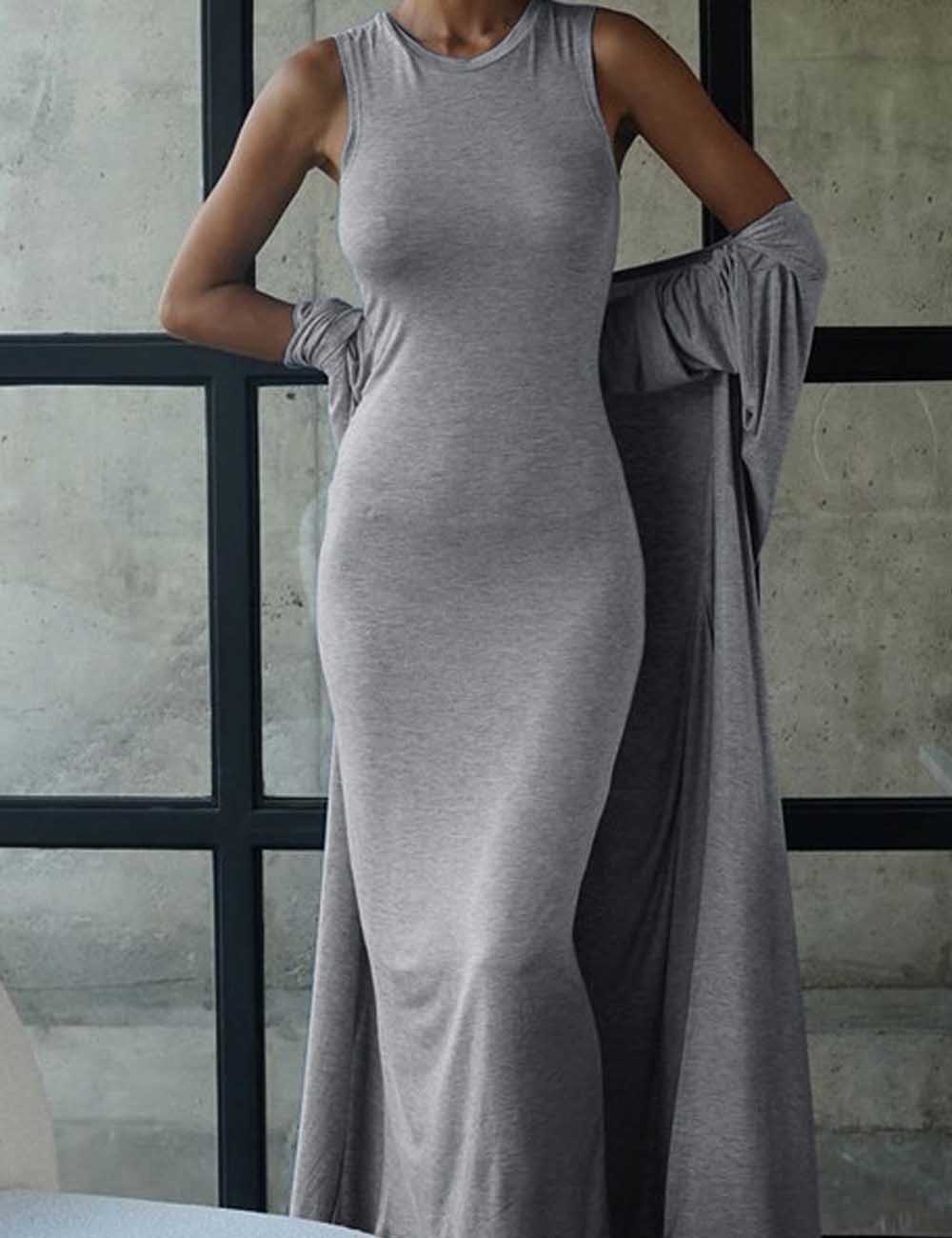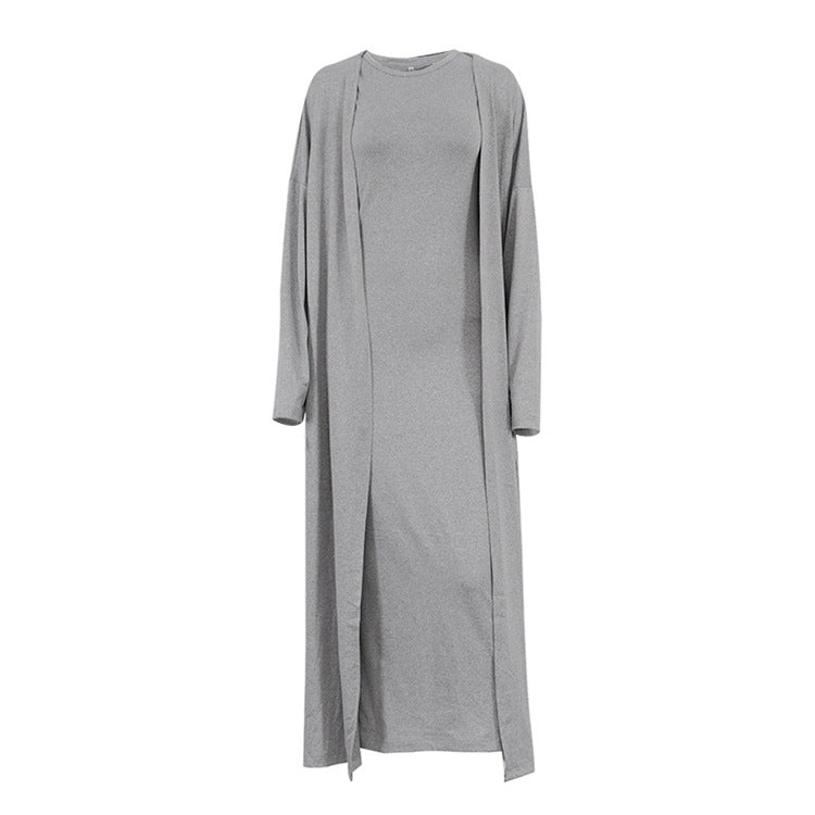 2 Pcs Casual Long Cardigan Tank Dress Set DP25G548