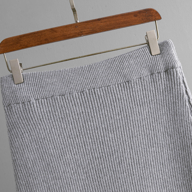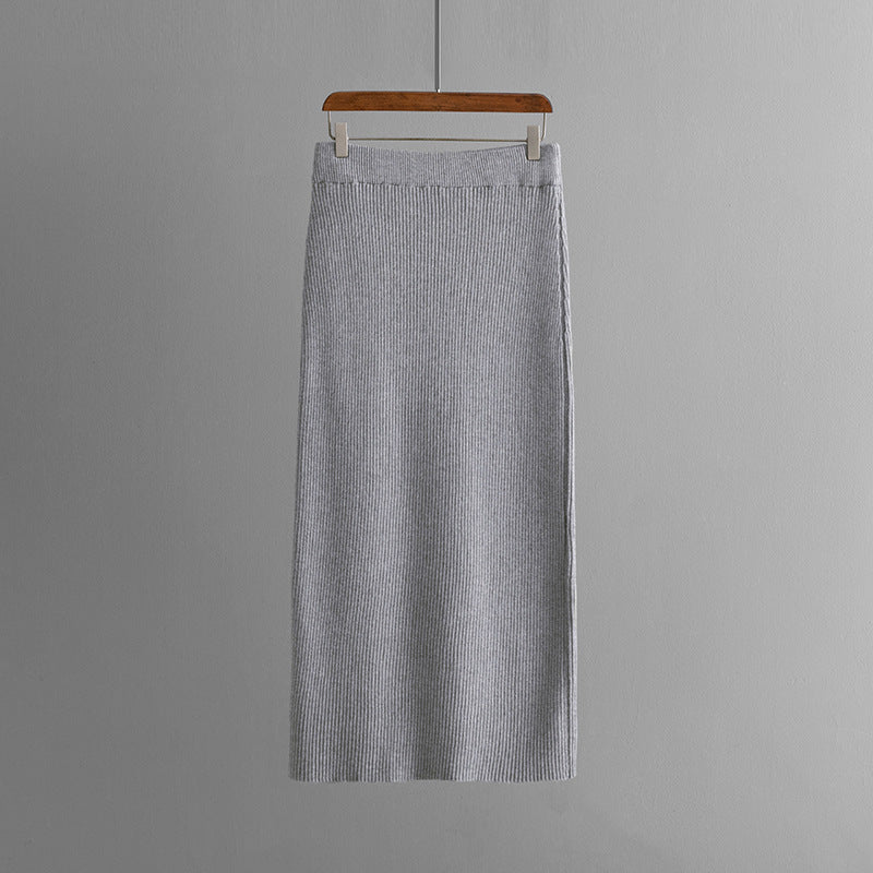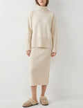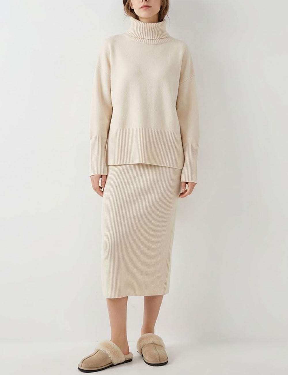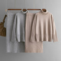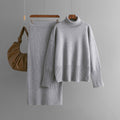 2 Pcs Elegant Knit Turtleneck Sweater Midi Skirt Set DP25H651