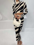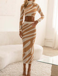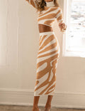 2 Pcs Fall Striped Long Sleeve Bodycon Maxi Skirt DP25G539