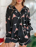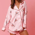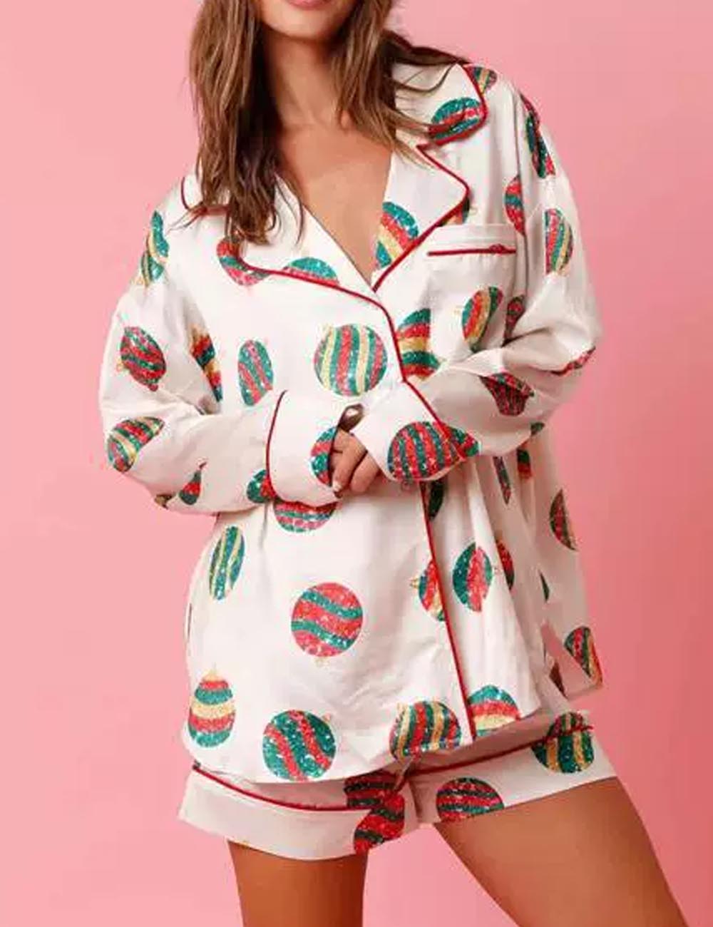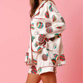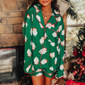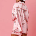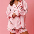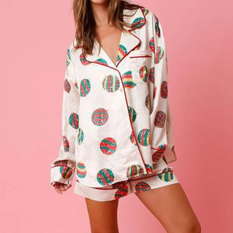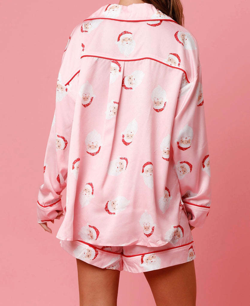 2 Pcs Soft Cartoon Print Satin Christmas Pajamas Set DP25H433