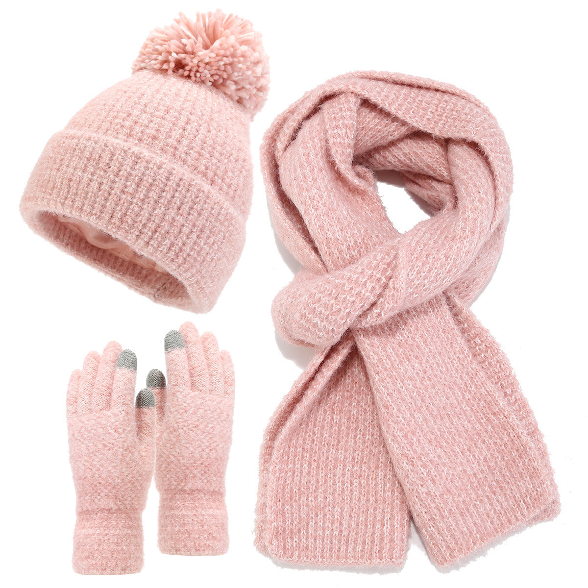 3 Pcs Winter Thermal Beanie Hat Scarf Gloves Sets DP25G715