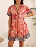 Bohemian V-Neck Print Chiffon Mini Dress DP25C880