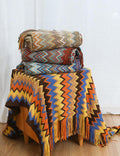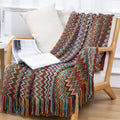 Boho Tassel Knit Color Block Throw Blanket DP25E612