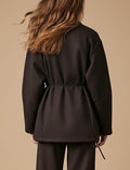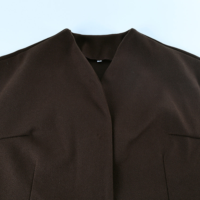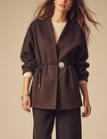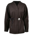 Brown V-Neck Shell Waist Tie Loose Jacket DP25G804