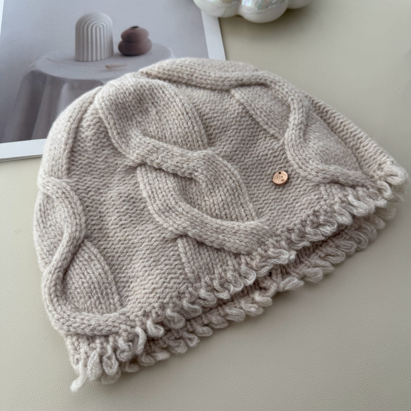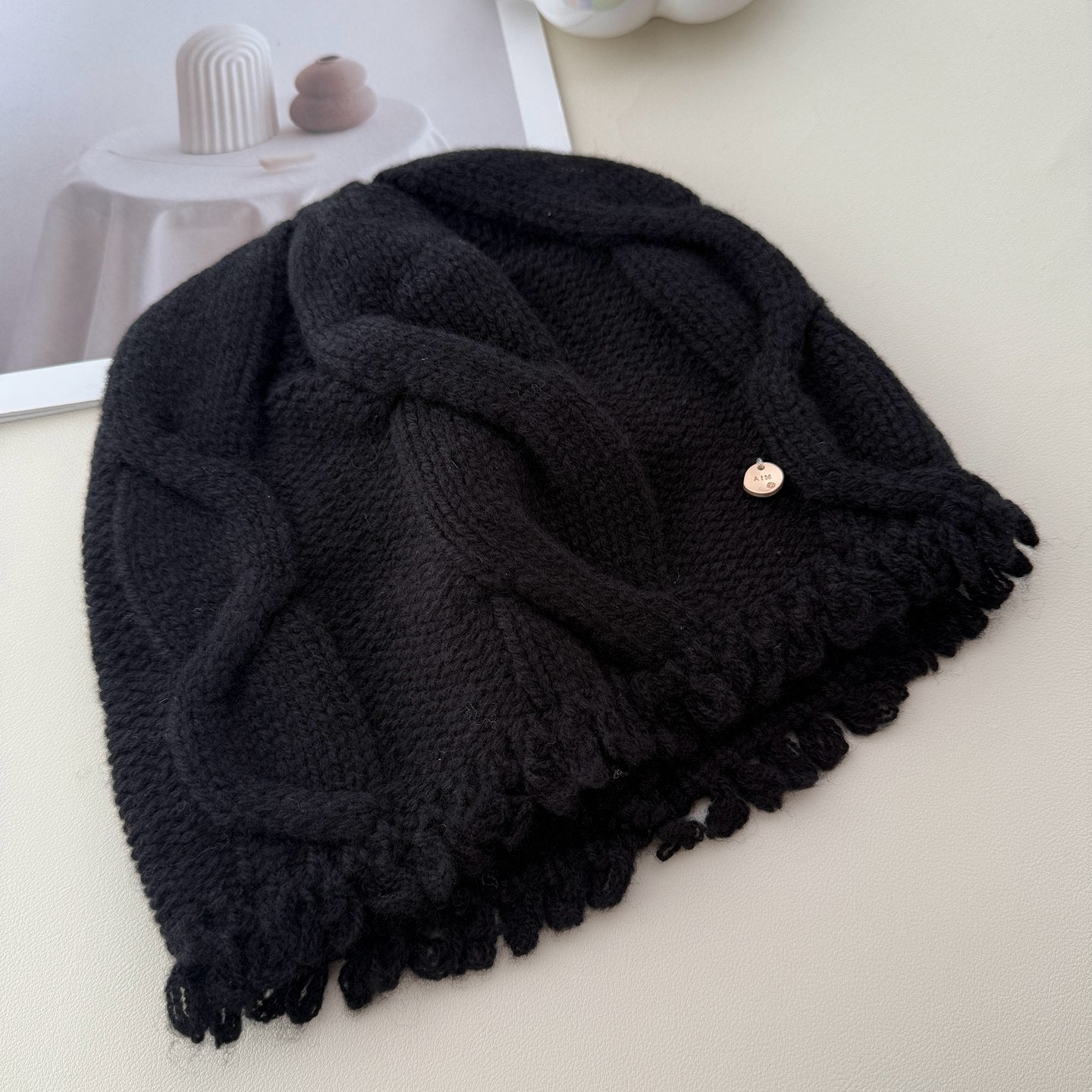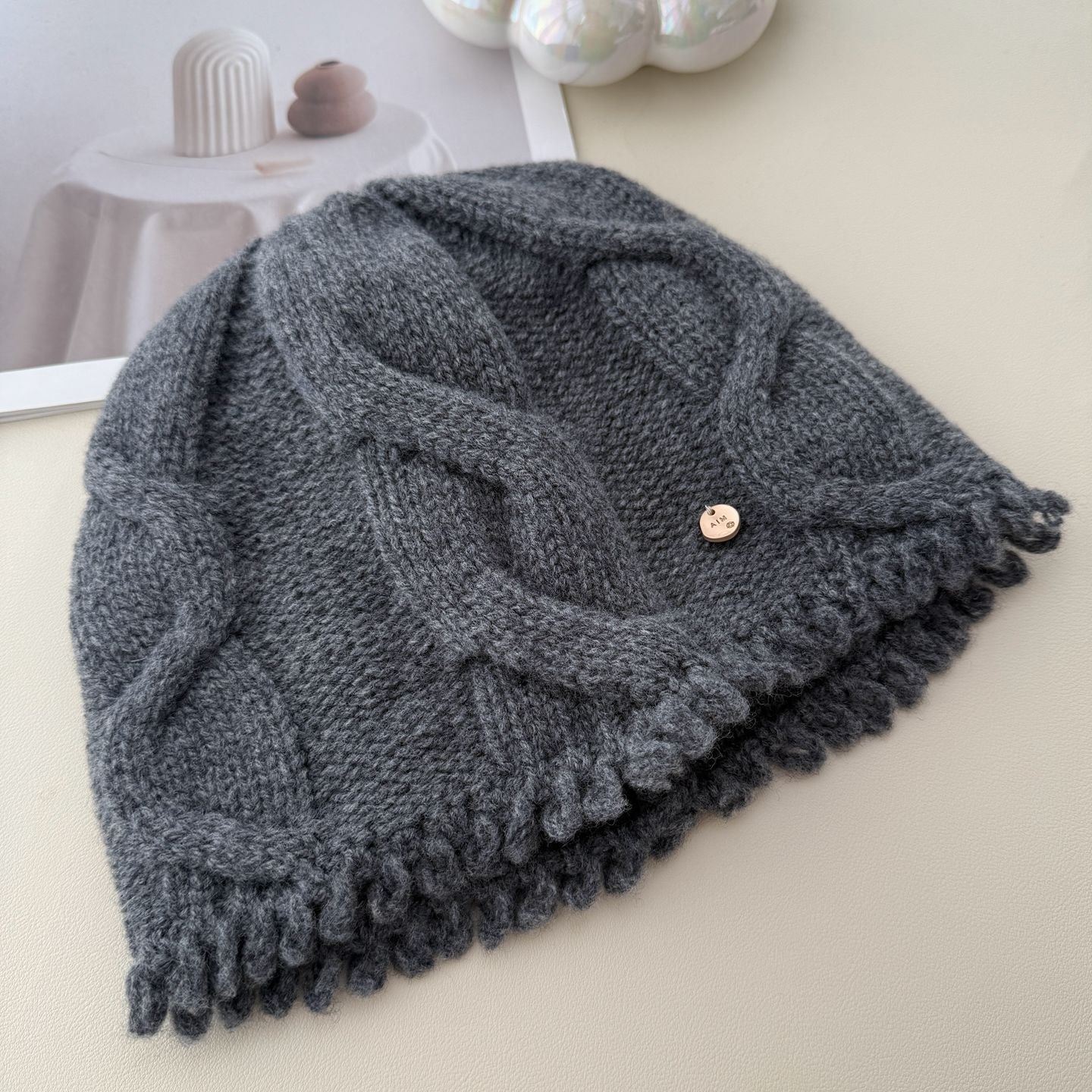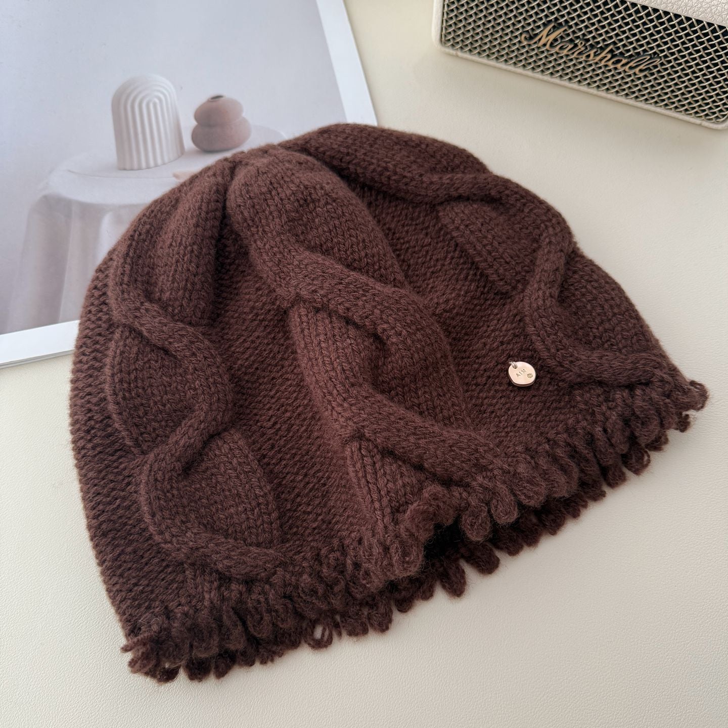 Cable Knit Tassel Solid Color Beanie Hat DP25H737
