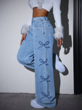 Casual Bow Print High Waist Baggy Jeans DP25G910