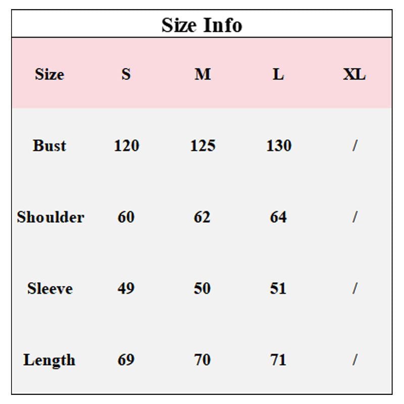 * Size Notice: Please refer to the size chart before purchasing. Manual measurement may result in a 1-3 cm difference.