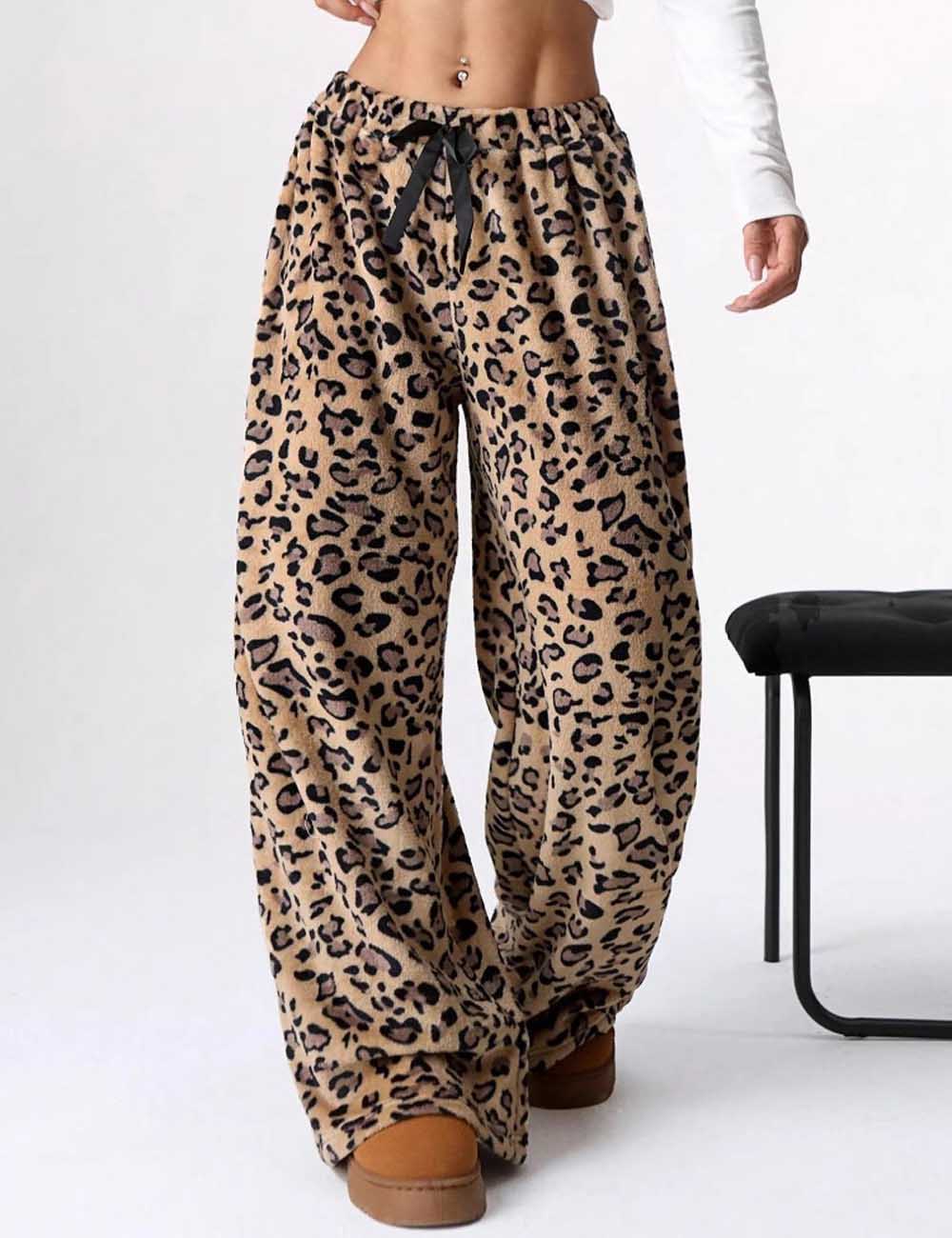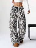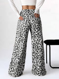 Casual Leopard Print Elastic Waist Wide Leg Pants DP25G901