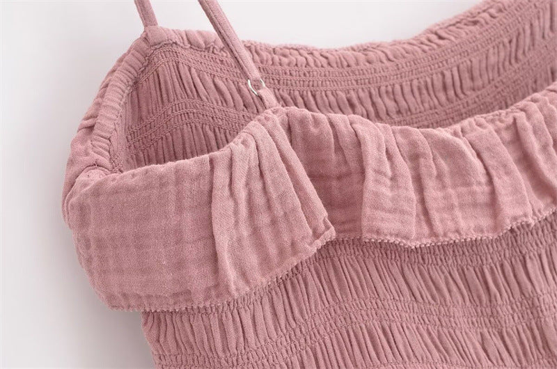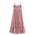 Casual Pleated Spaghetti Strap Ruffle Maxi Dress DP25C961