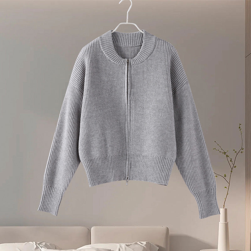 Casual Solid Color Zip Up Knit Cardigan DP25G918