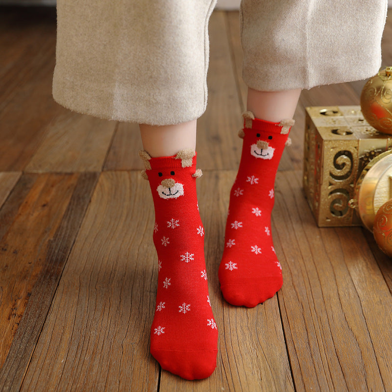 Christmas Reindeer Cartoon Funny Crew Socks DP25G761
