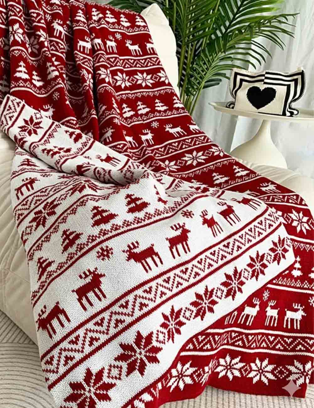 Christmas Snowflake Reversible Soft Throw Knit Blanket DP25H423