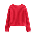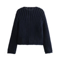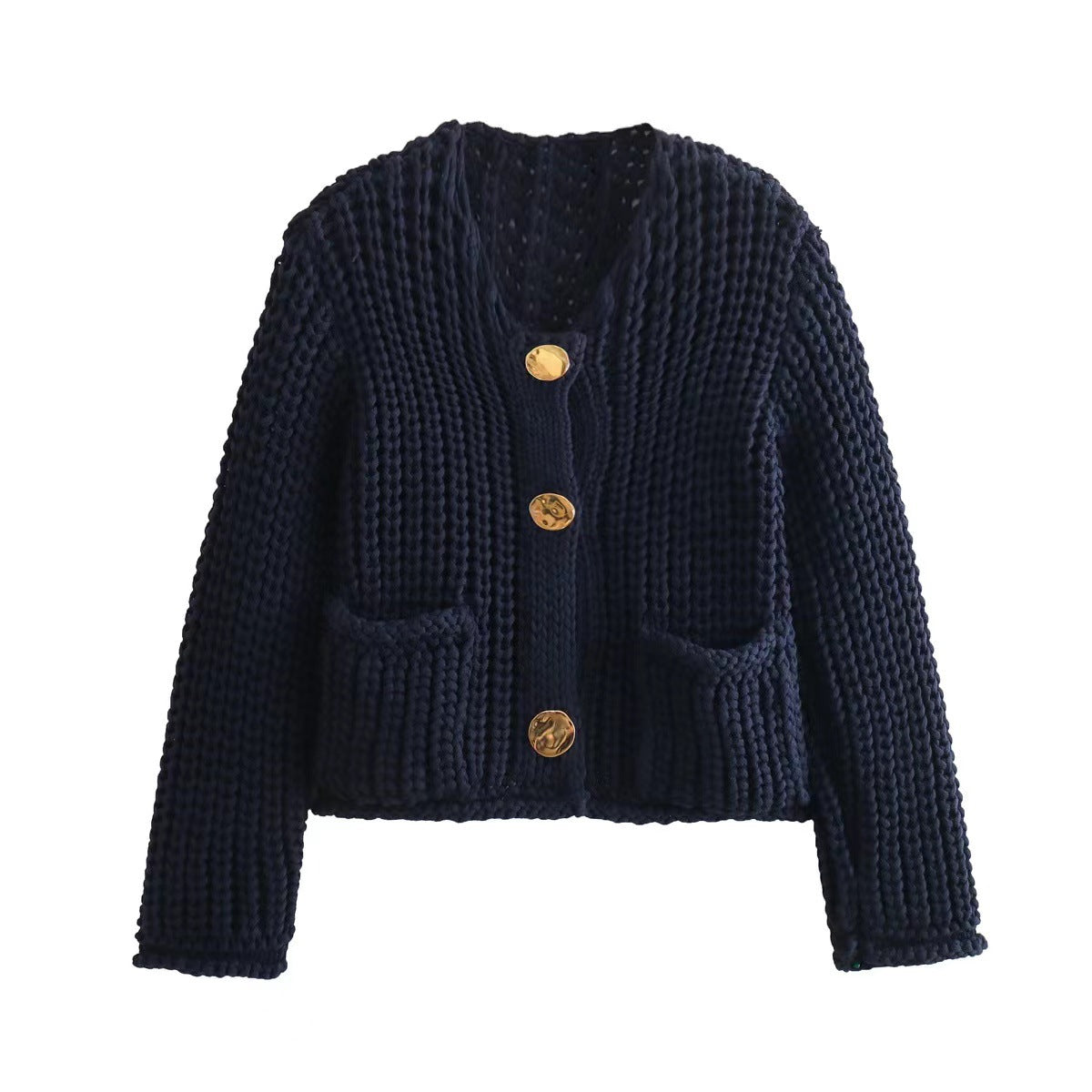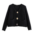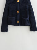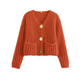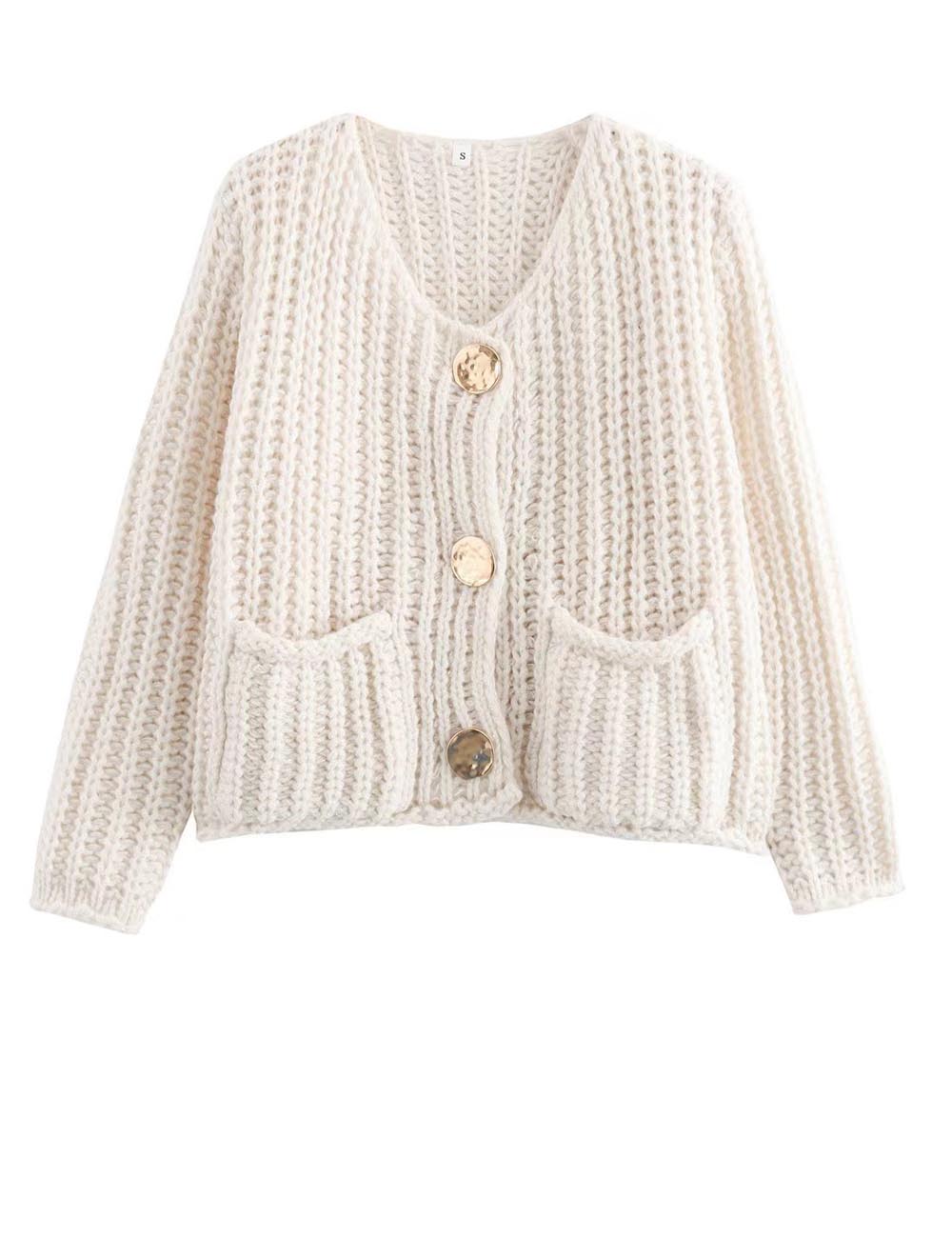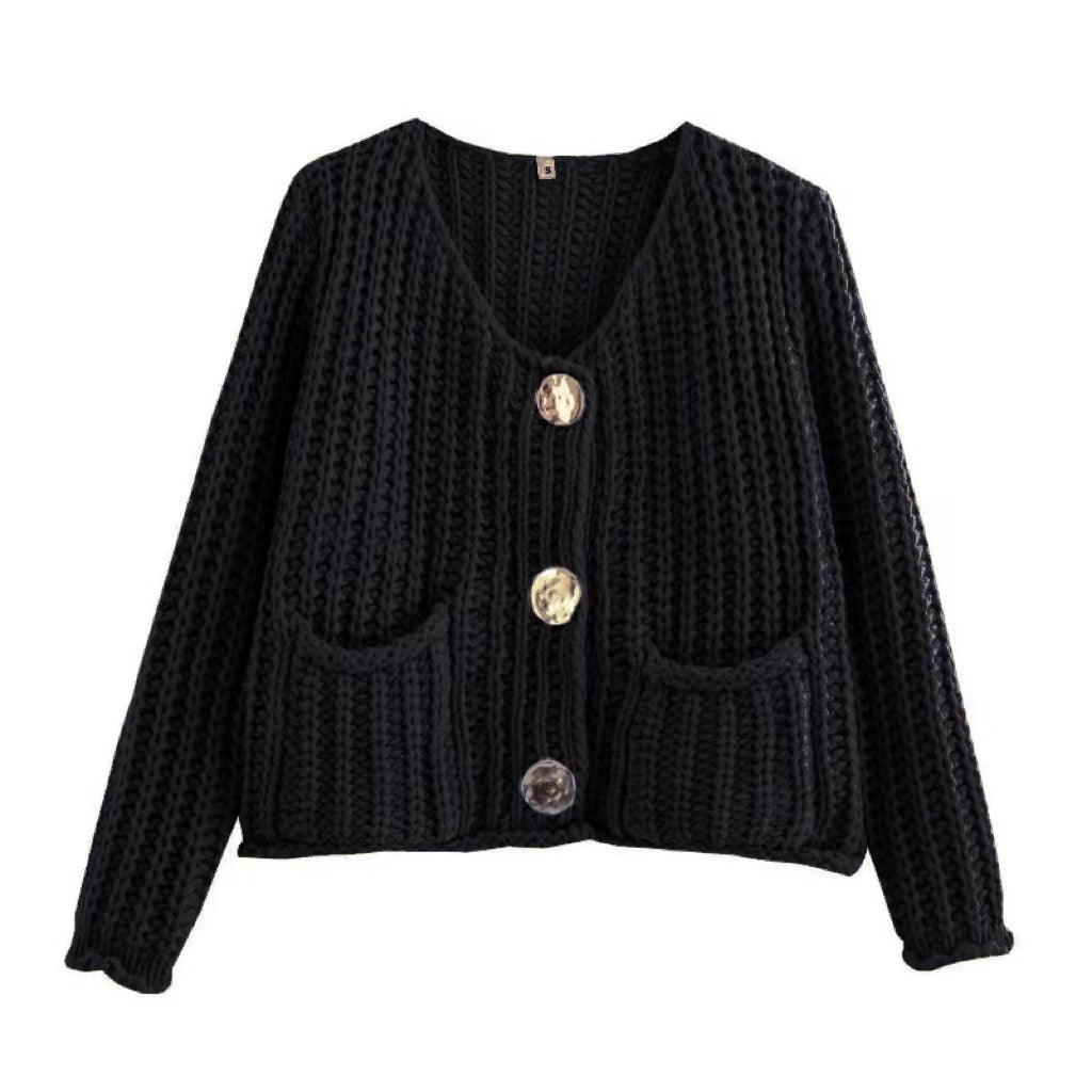 Chunky Knit V-Neck Button Down Crop Cardigan DP25G934