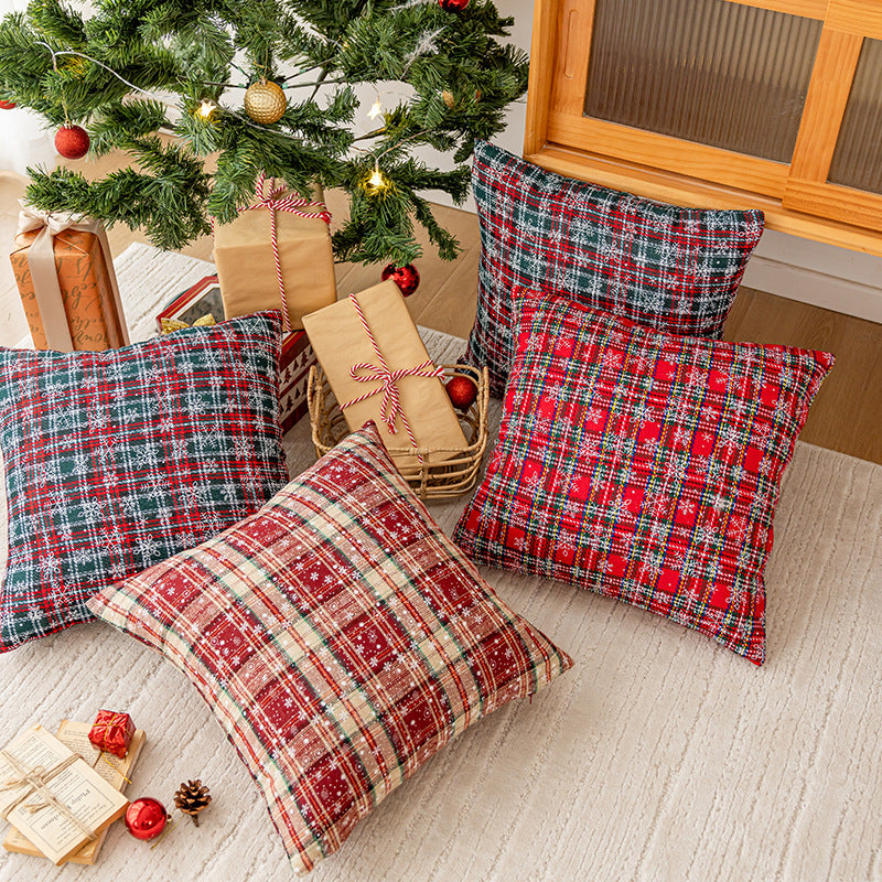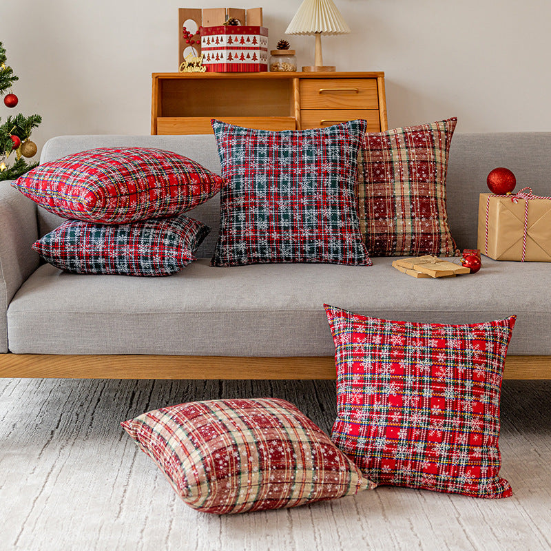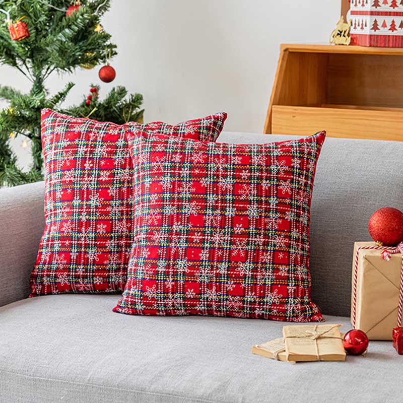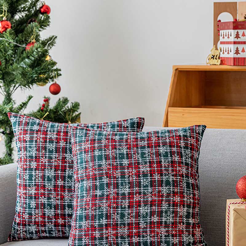 Classic Christmas Plaid Snowflake Throw Pillow Covers DP25H465