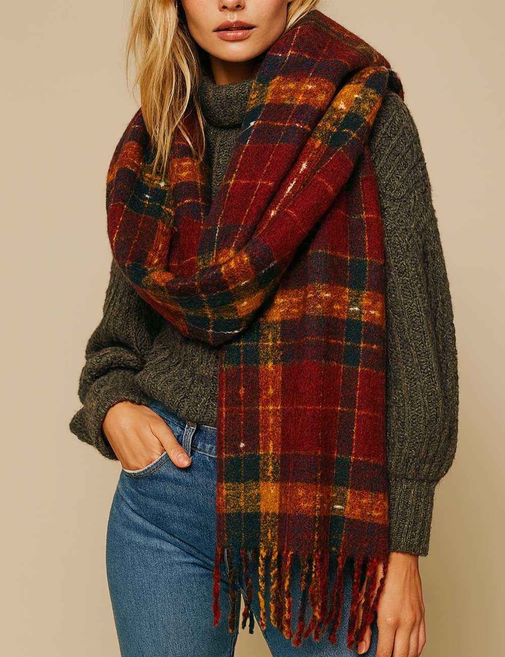 Classic Plaid Thicken Warm Christmas Theme Shawl DP25H416