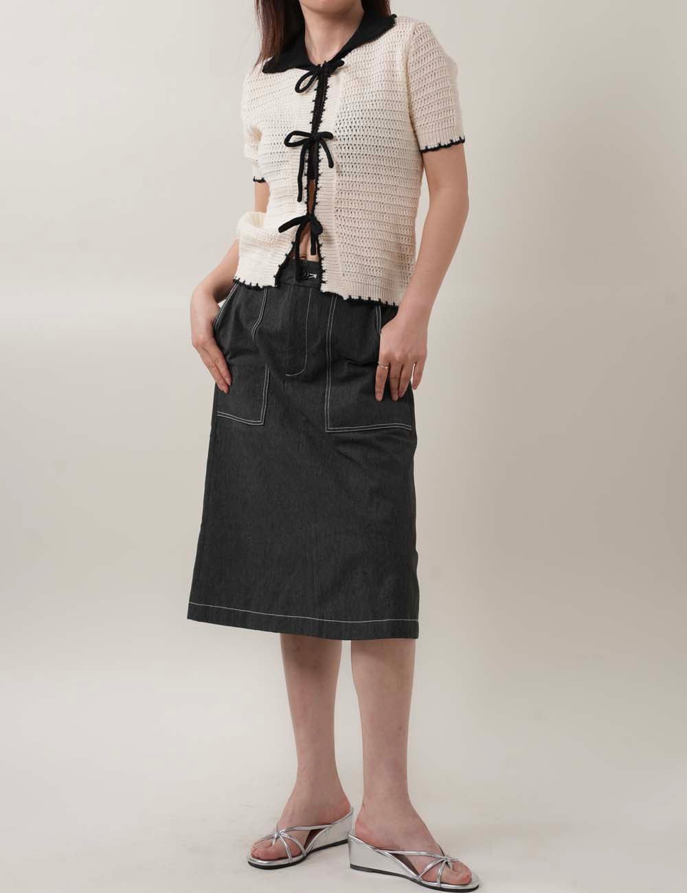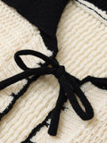 Color Block Bow Front Short Sleeves Knit Top DP25C441
