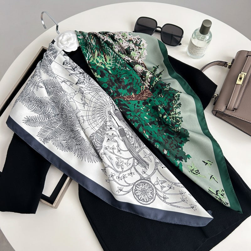 Color Block Print Soft Square Silk Scarf DP25G459