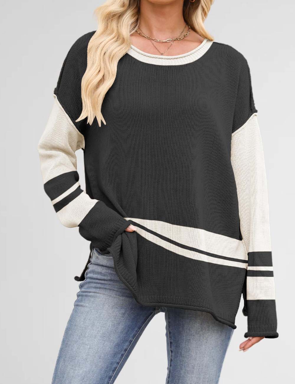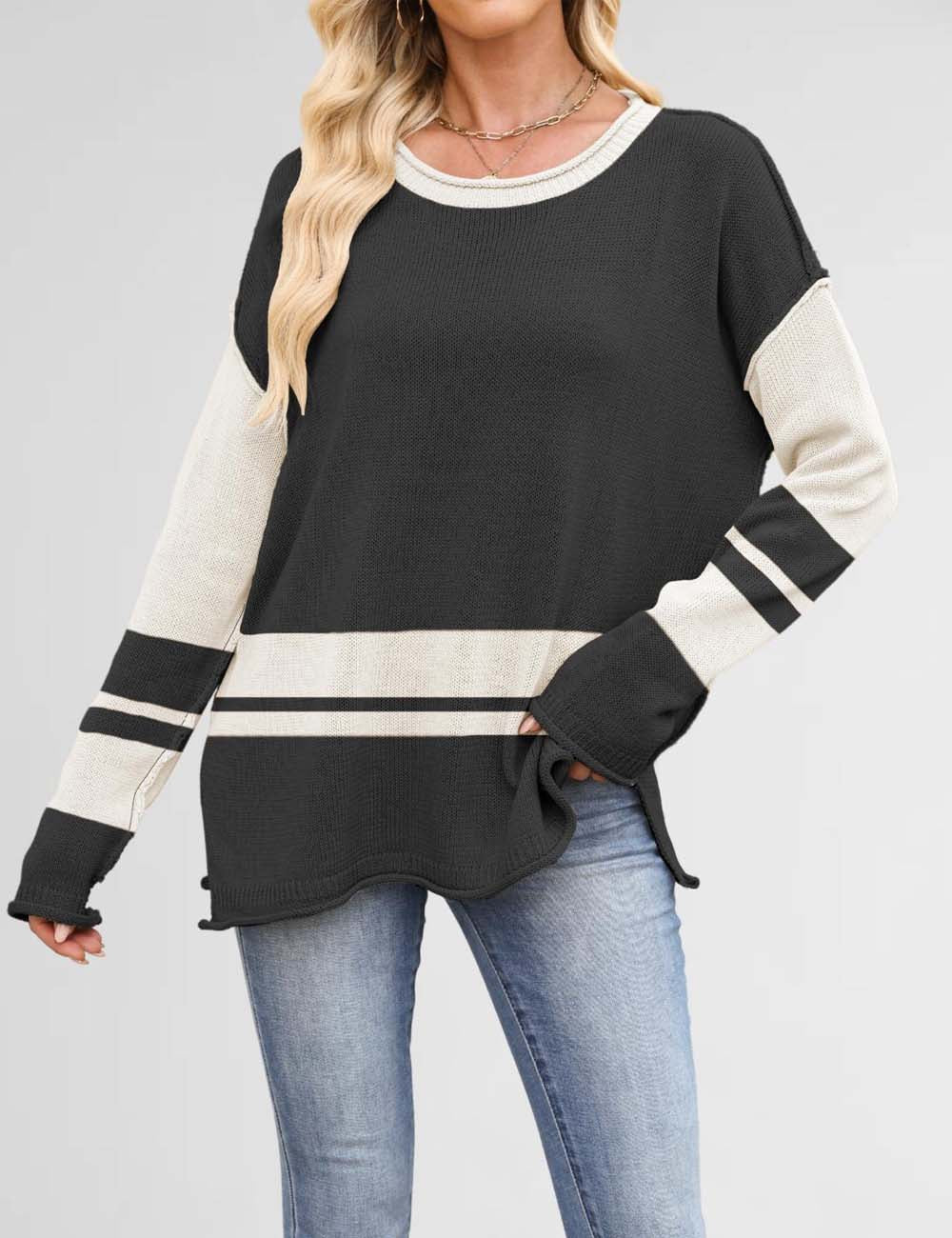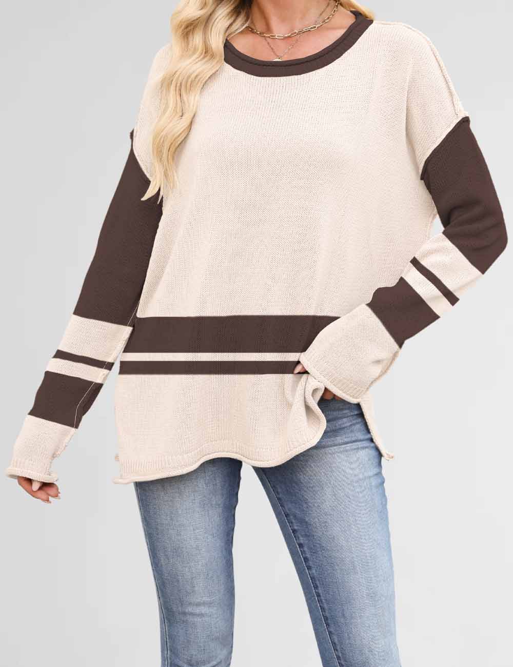 Color Block Round Neck Loose Sweater DP25G917