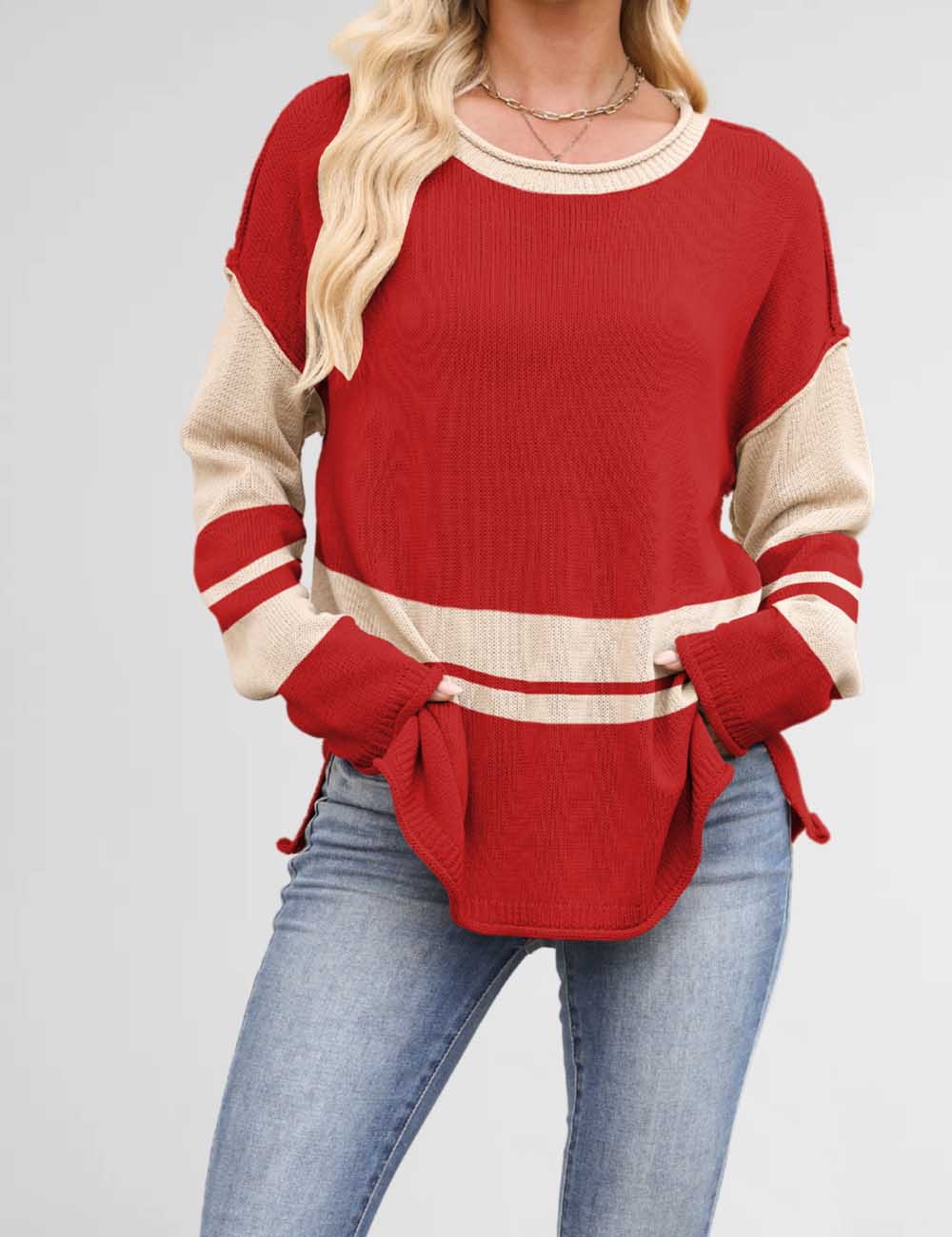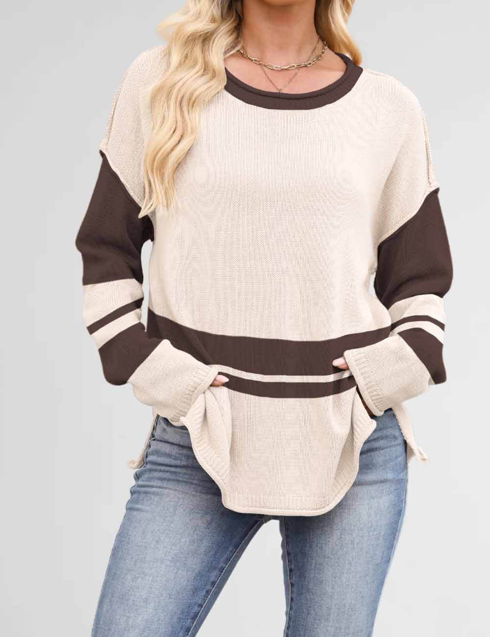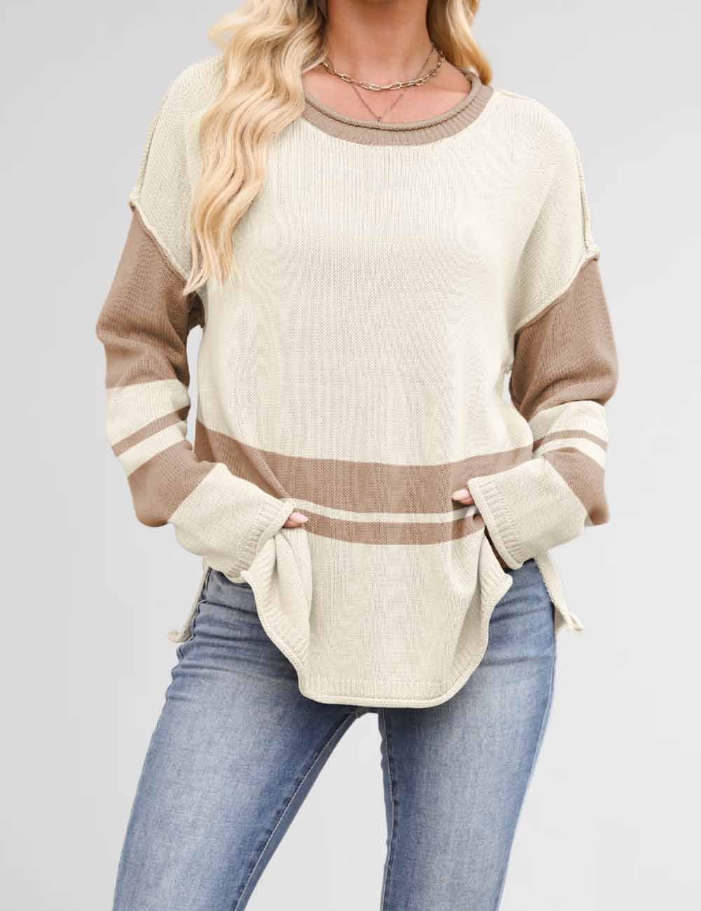 Color Block Round Neck Loose Sweater DP25G917