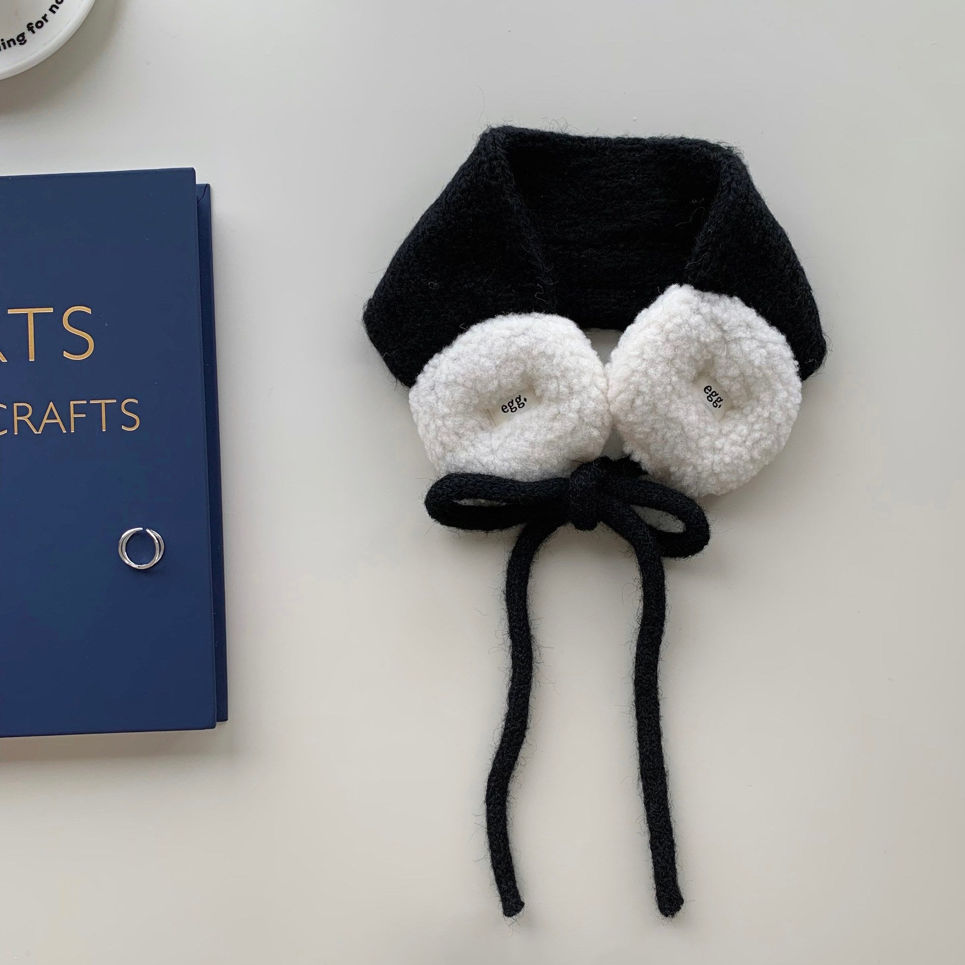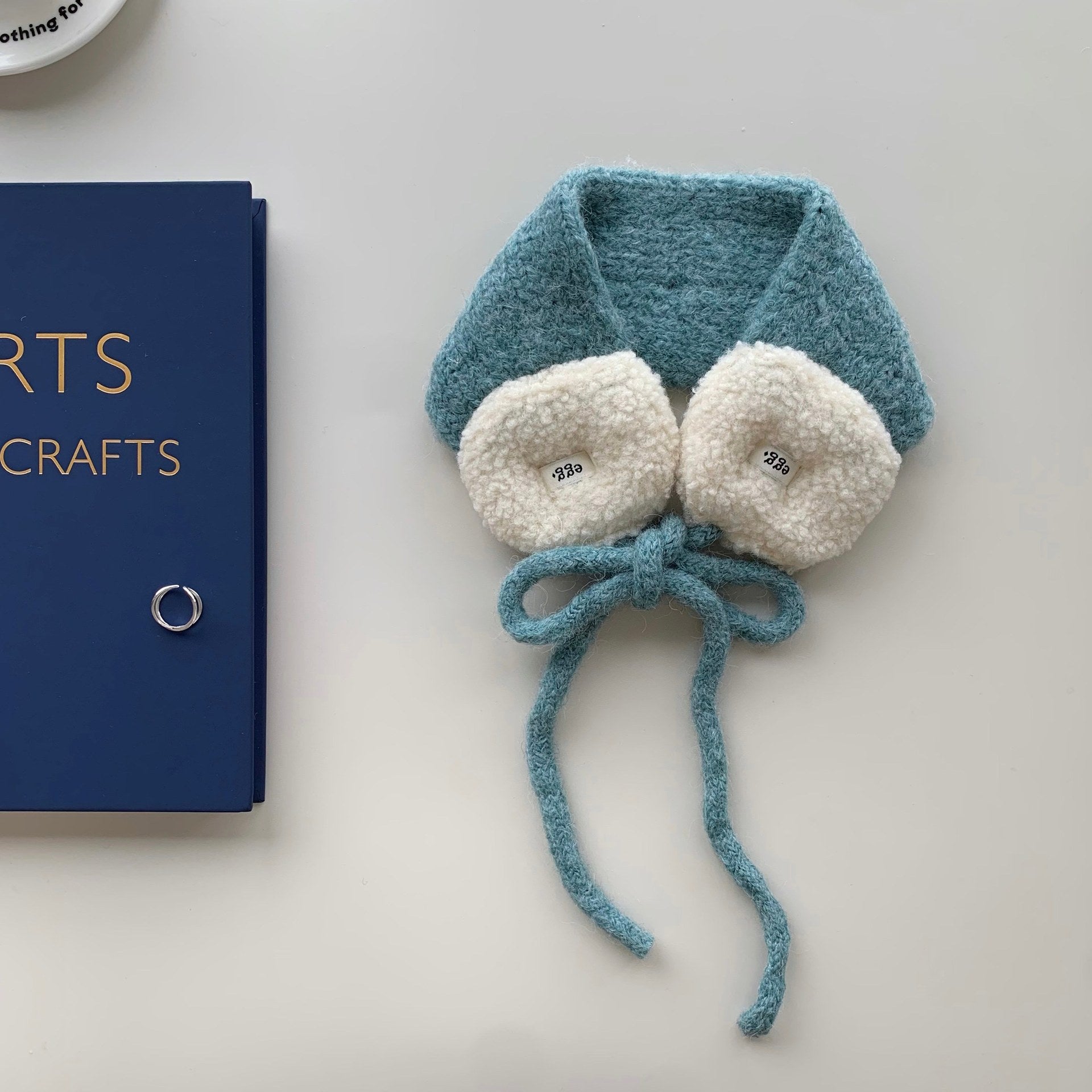 Color Contrast Plush Knit Tie Warm Earmuffs DP25H764
