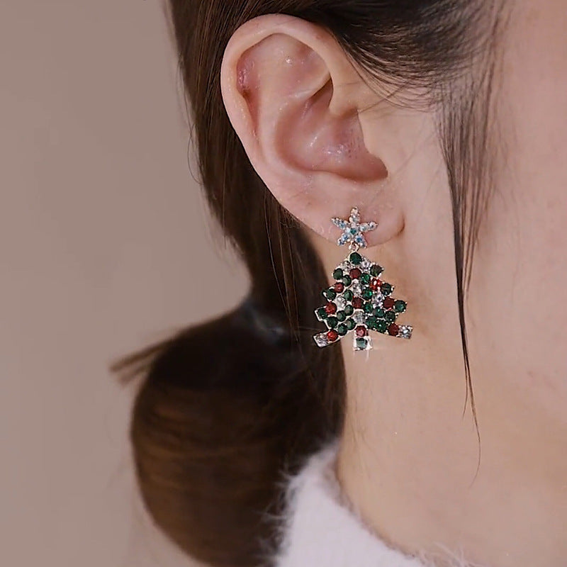 Colorful Rhinestone Christmas Tree Tassel Dangle Earrings DP25G791