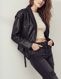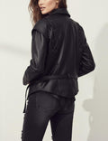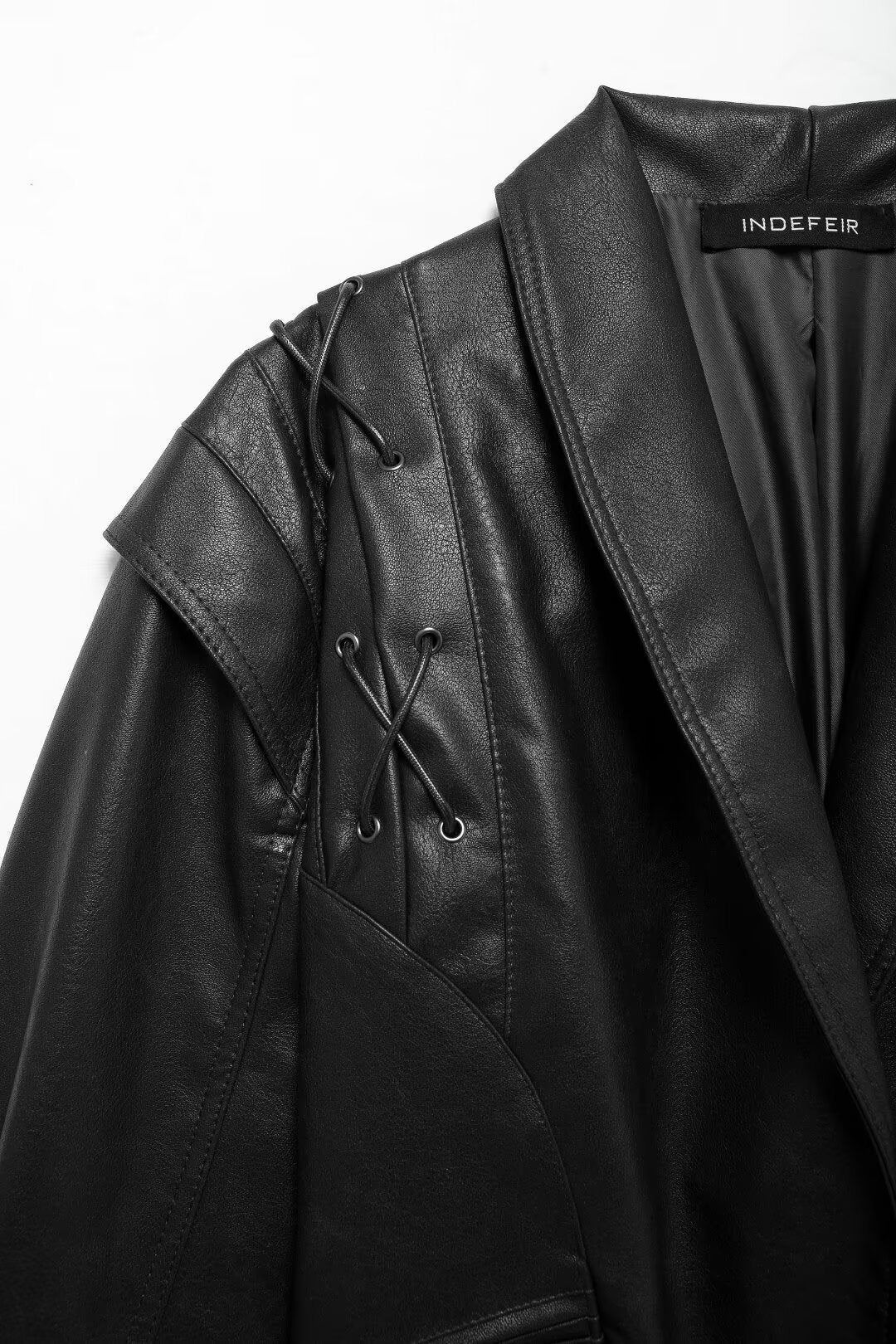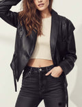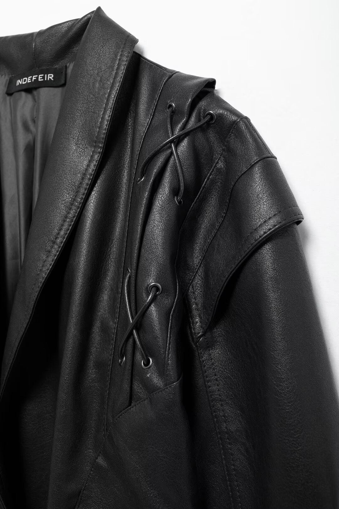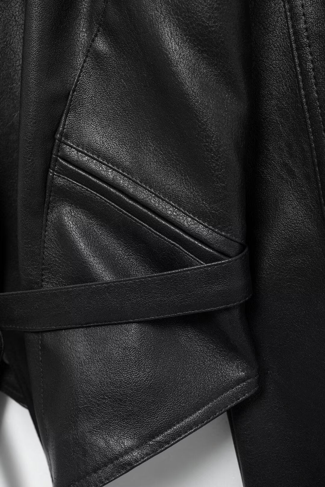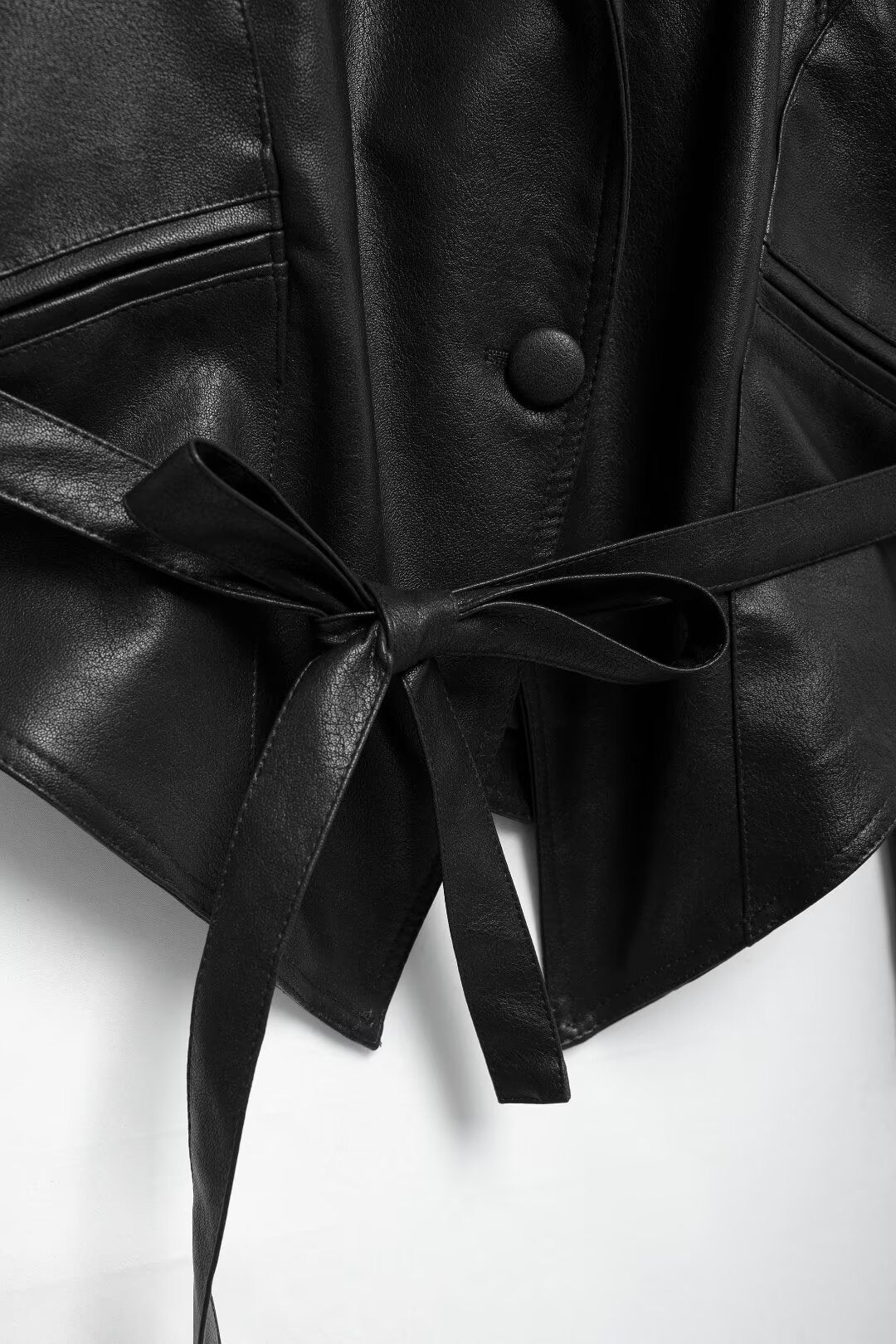 Cool Lapel Drawstring Belt Leather Jacket DP25G806