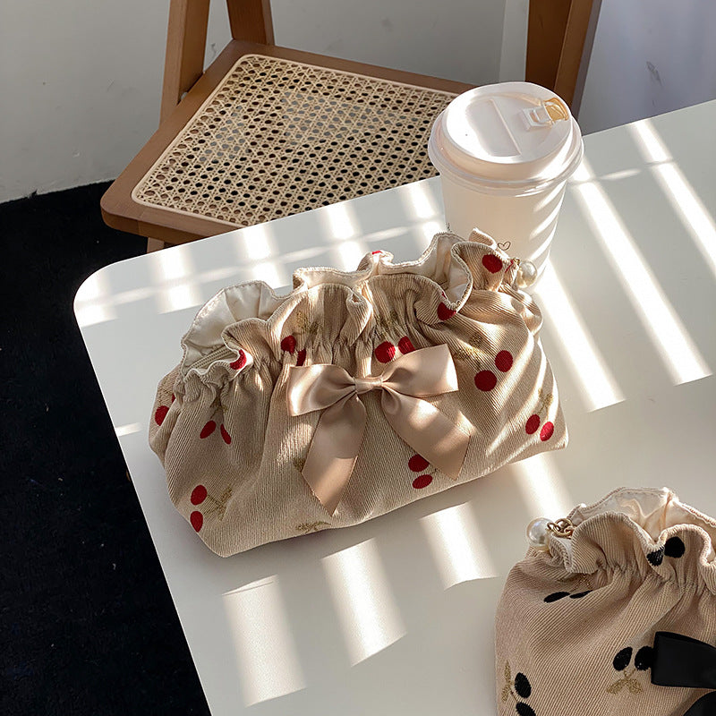 Corduroy Cherry Bow Cosmetic Bag DPCB4