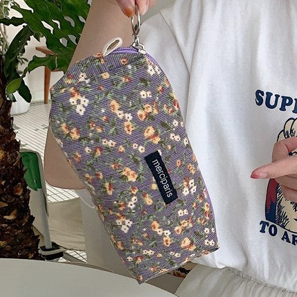 Corduroy Flower Jacquard Color Block Make Up Bag DP25A571