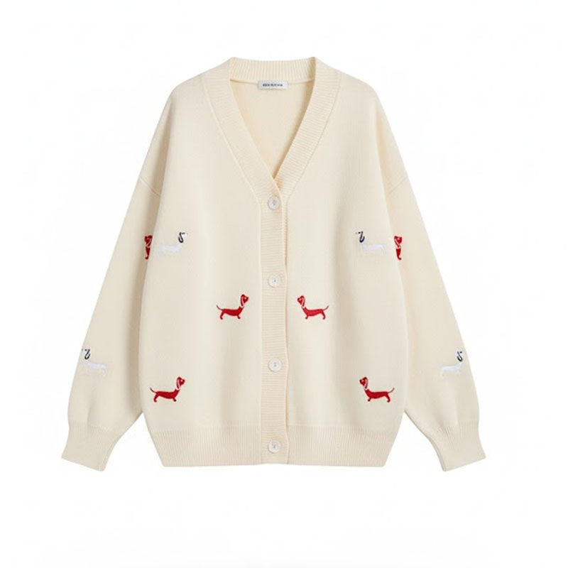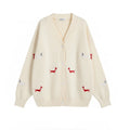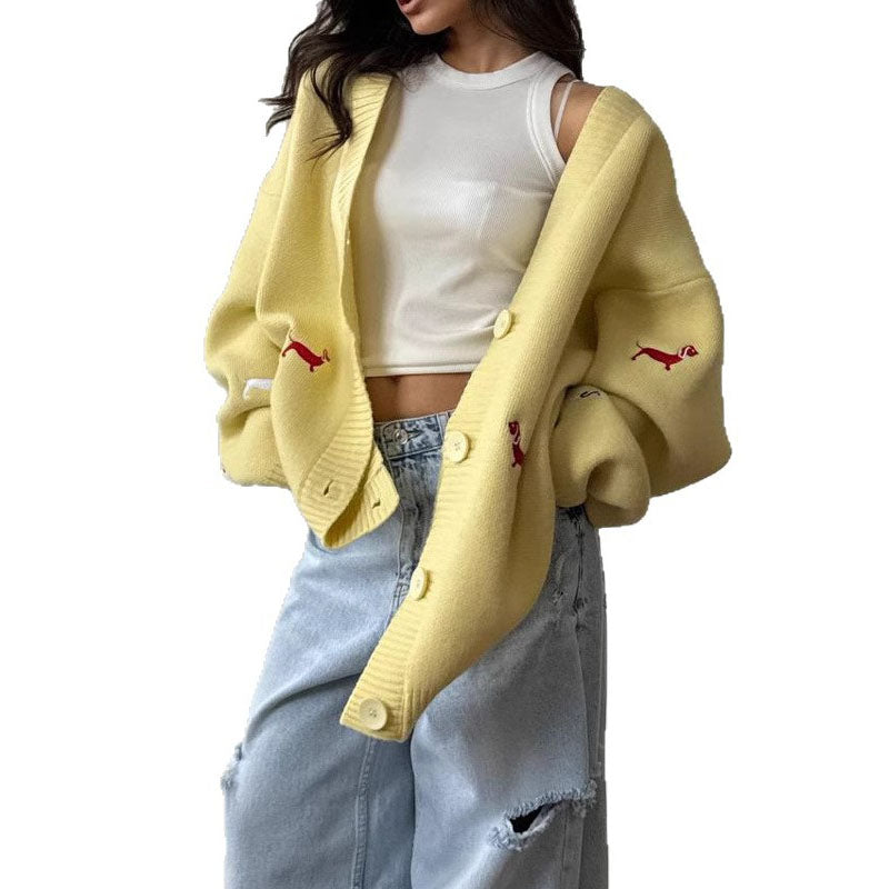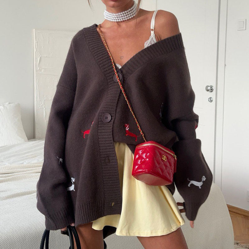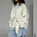 Cute Animal Embroidery V-Neck Oversized Cardigan DP25G967