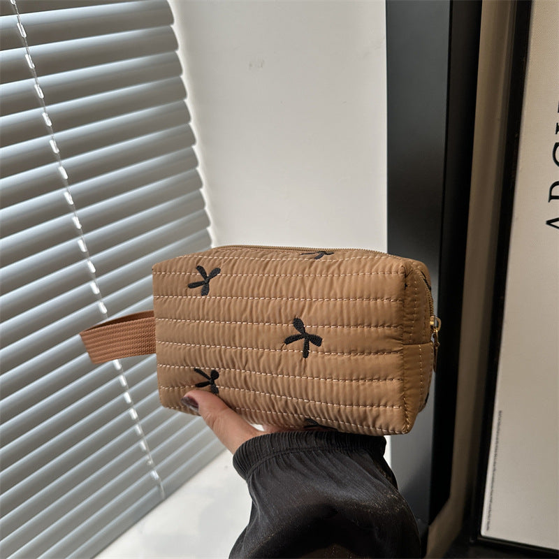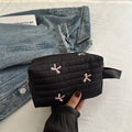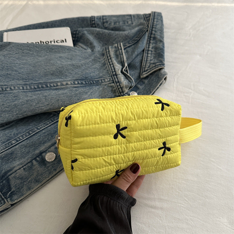 Cute Bow Embroidery Portable Puffer Cosmetic Bag DP25H546