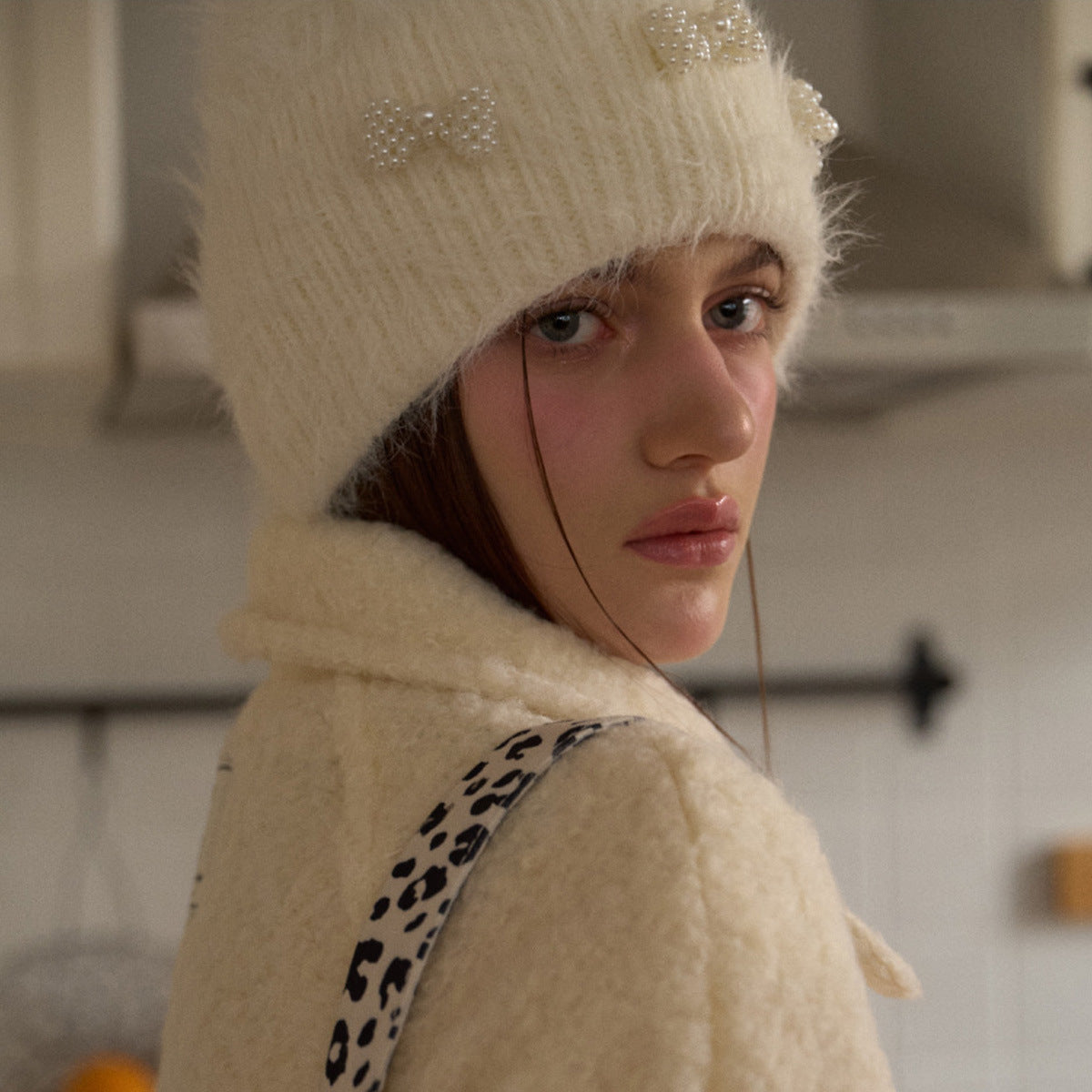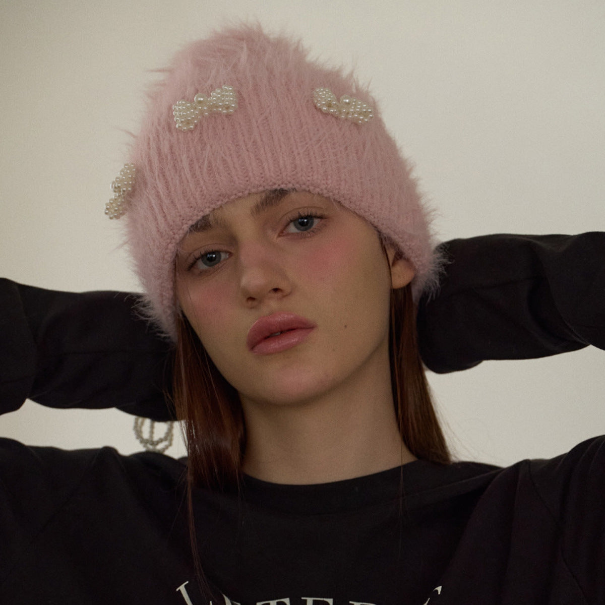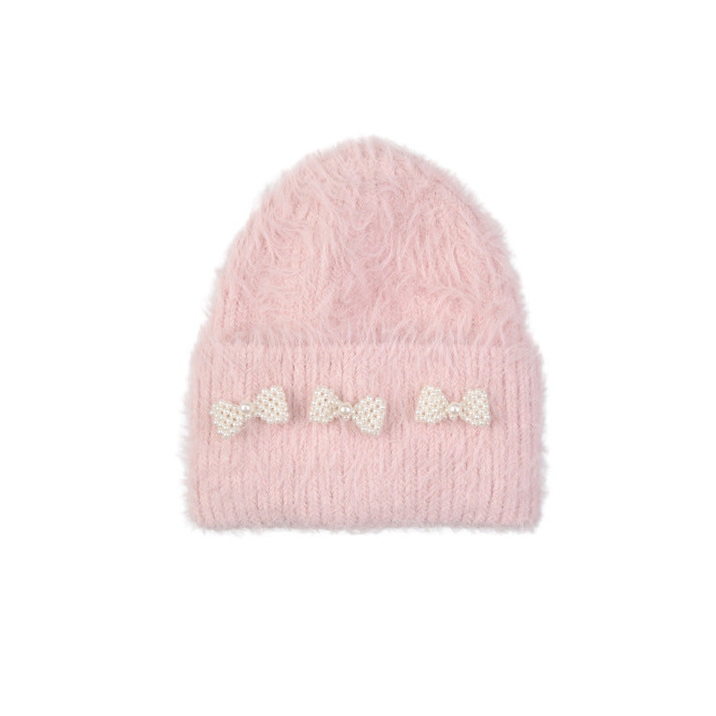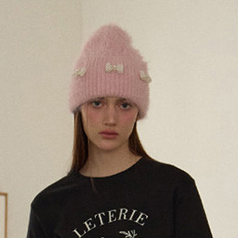Cute Bow Knot Fuzzy Solid Color Beanie Hat DP25H708