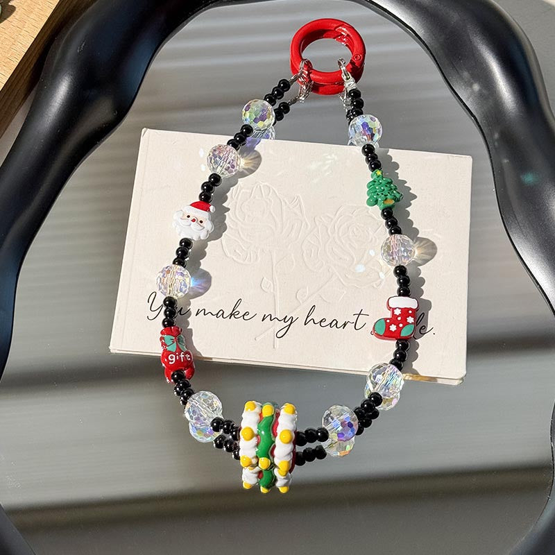 Cute Christmas Crystal Beaded Phone Charm DP25G762