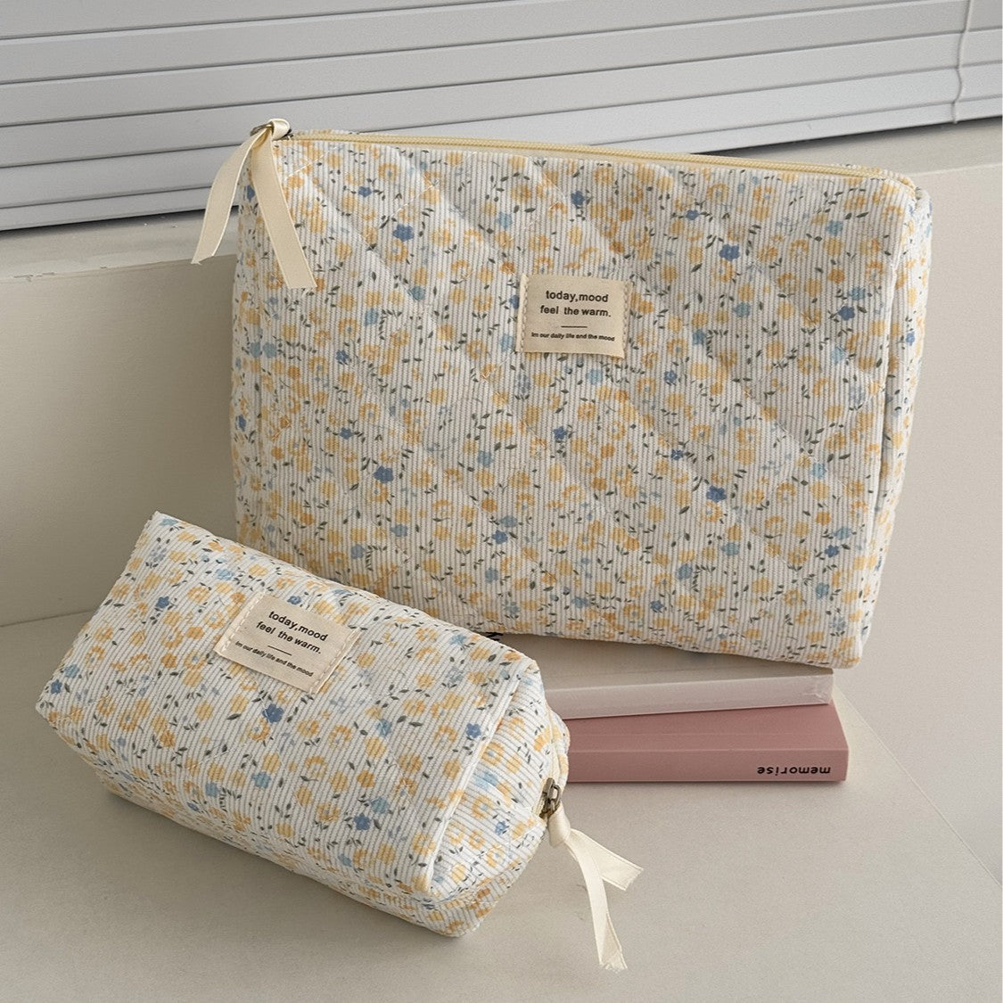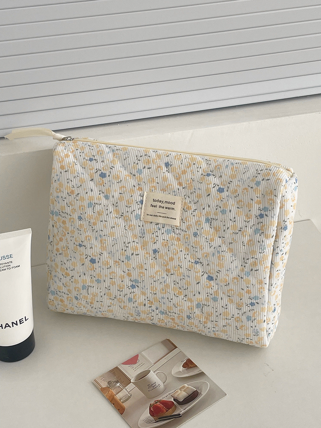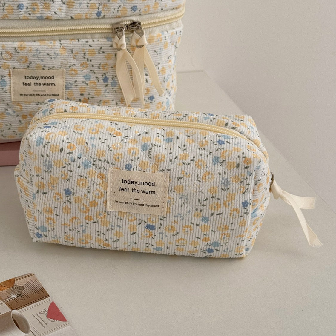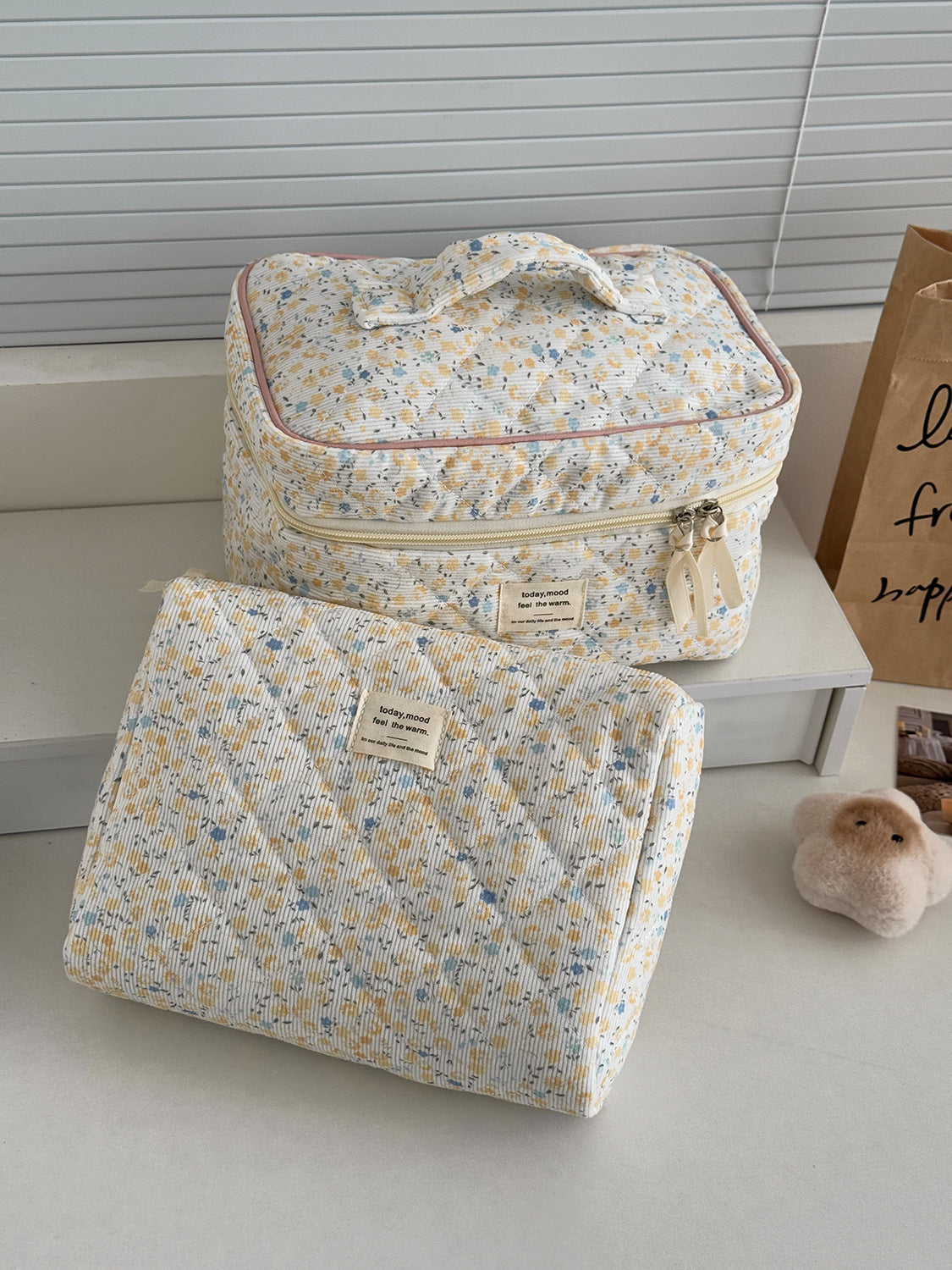 Cute Corduroy Flower Print Travel Makeup Bag DP25H560