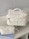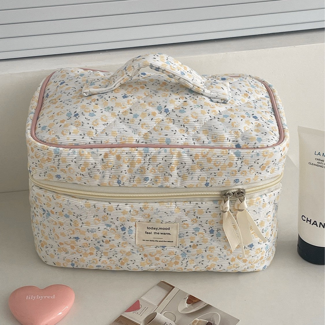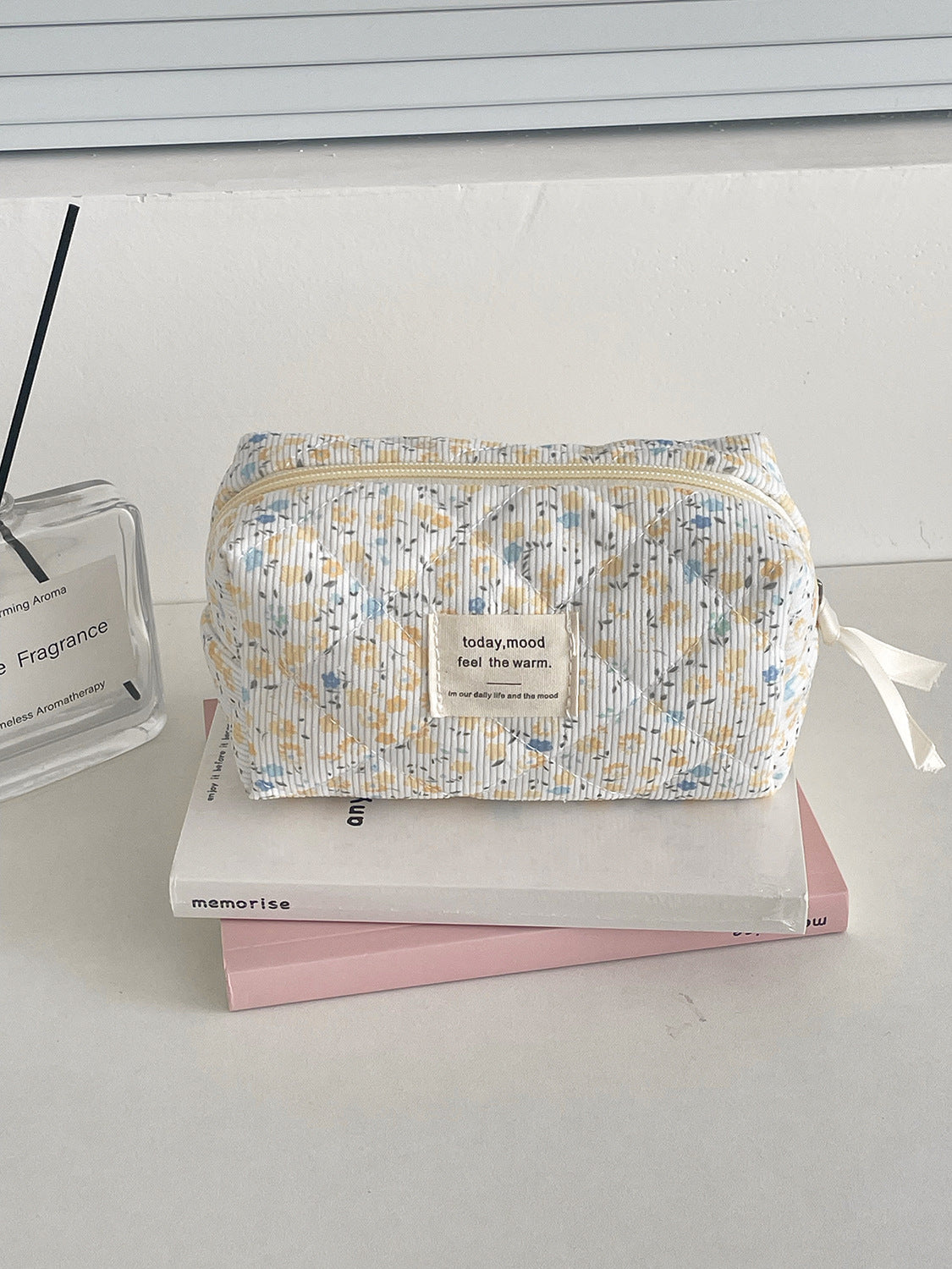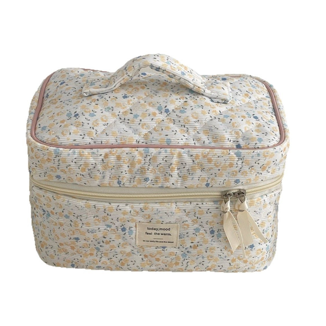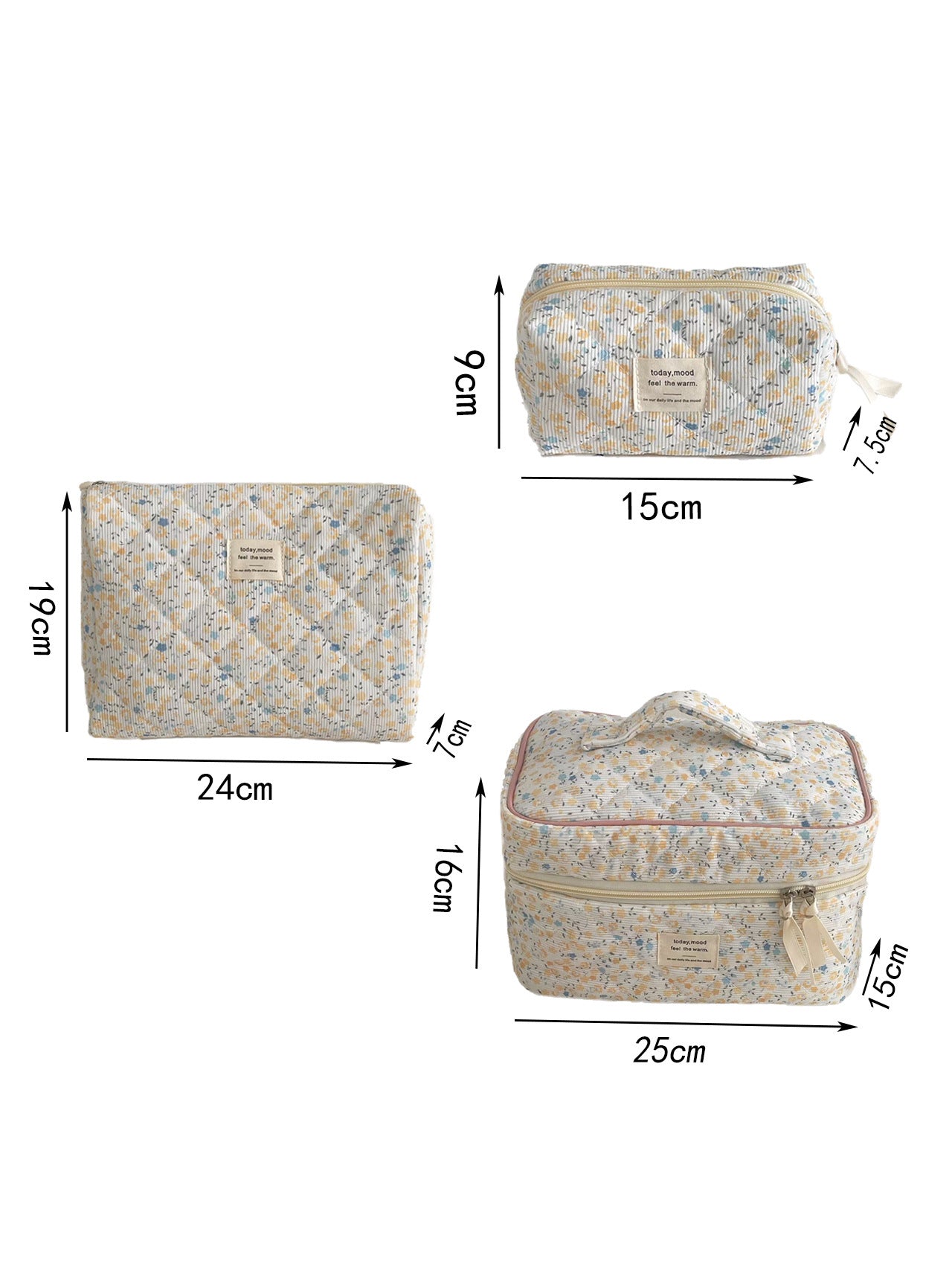 Cute Corduroy Flower Print Travel Makeup Bag DP25H560