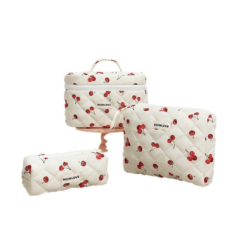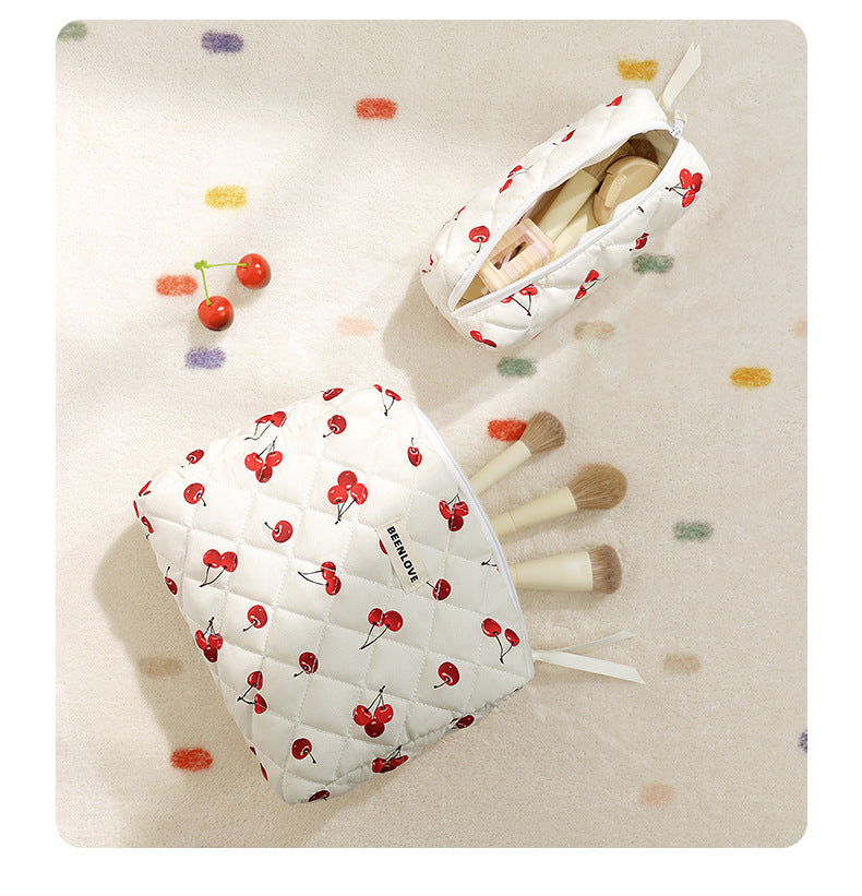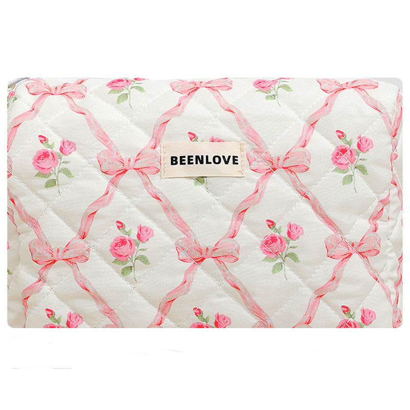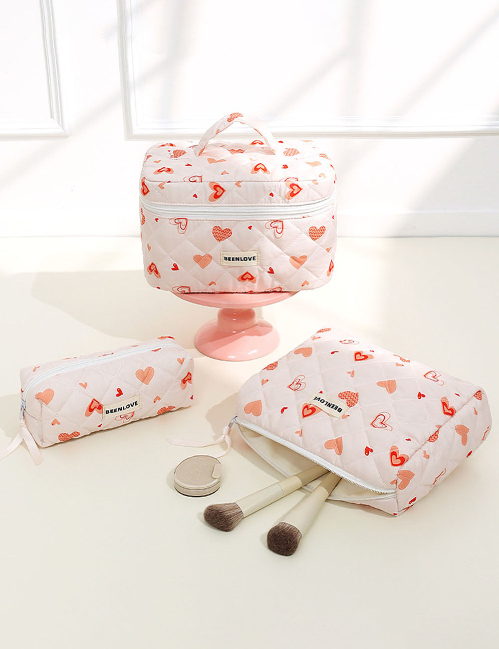 Cute Heart Print Cotton Quilted Cosmetic Bag DP25H573